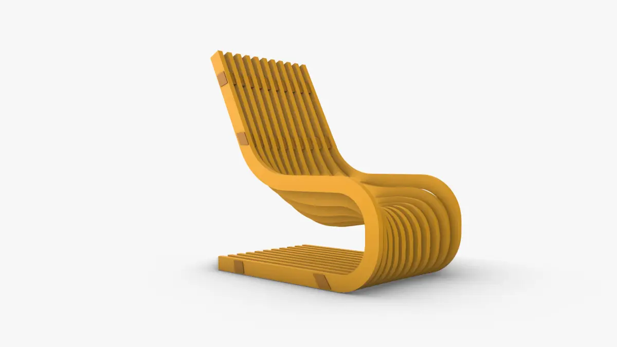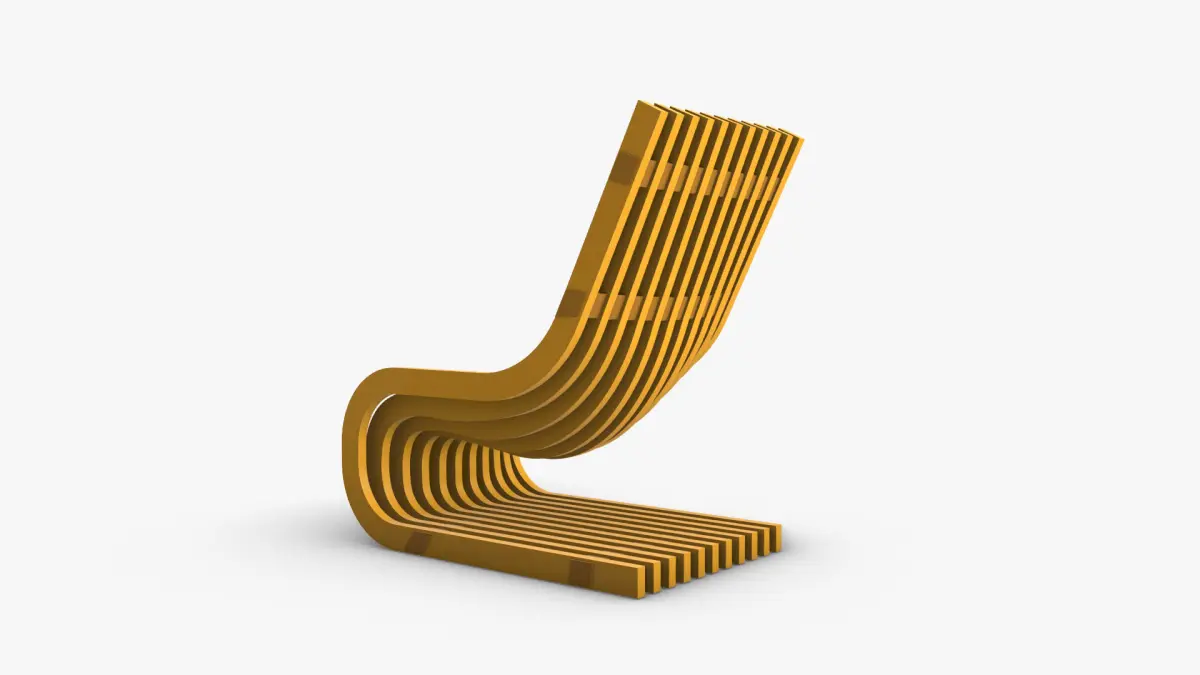 A Modern Chair with a Sci-Fi form and Sliced Sections, it has a Smooth plastic continous surface, the model has a minimalist unique form that adds a futuristic vibe to the architectural environment, the model was created using computational parametric tools to achieve the most accurate geometry with clean details, it could be used for architectural render purposes indoors, and also for interior design, furnishing and decoration.