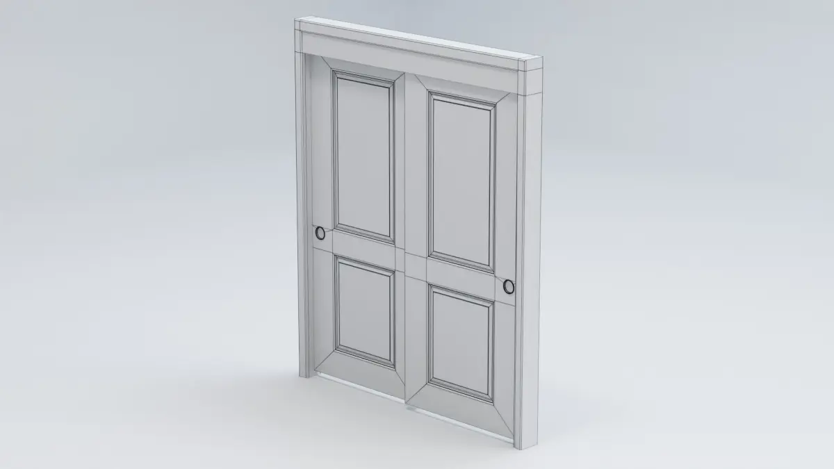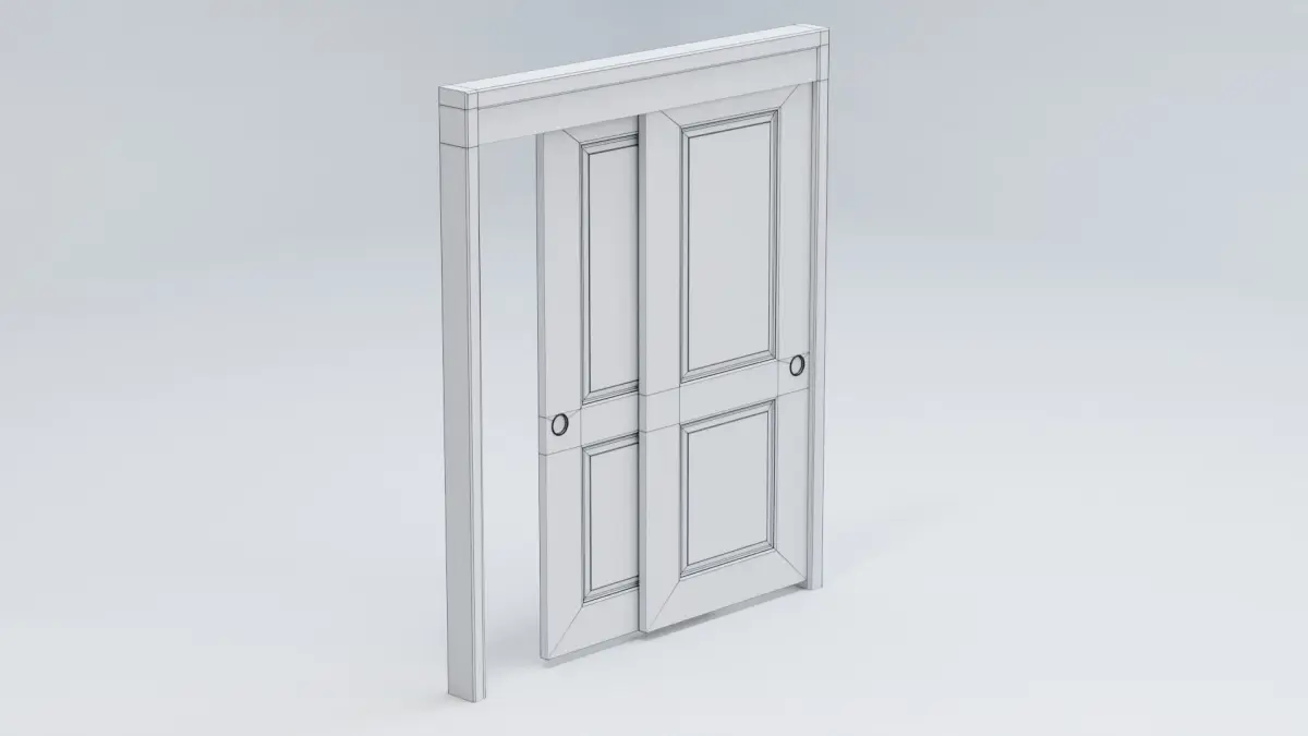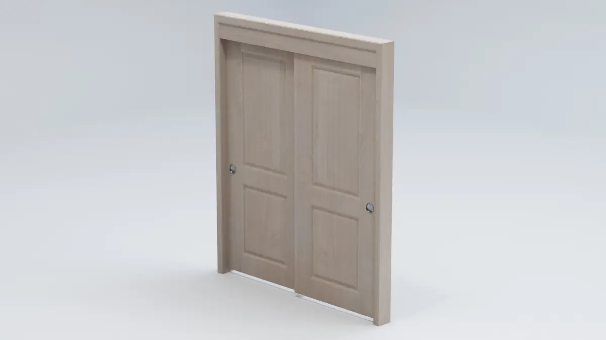 Sliding closet double doors for use in interior bedroom scenes. Used to store clothes and other items.