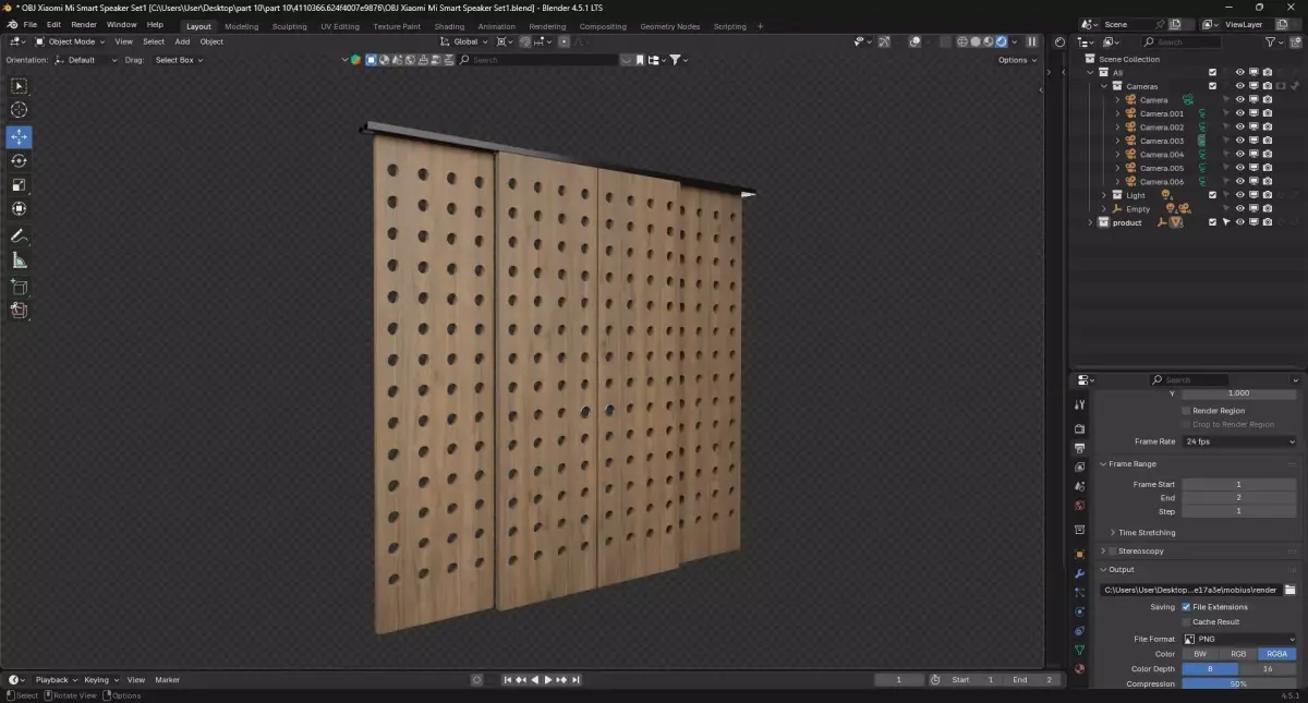 High-quality 3D model of sliding door partition featuring furniture item called sliding door partition for intorior or extorior decoration. The download includes the native Blender file with full material and lighting setup, as well as OBJ and FBX exports for compatibility with other software. Both high-poly and optimized low-poly meshes are provided, along with pbr textures (Color, Normal, Roughness, Displacement, and Subsurface Scattering). All assets are UV-mapped and ready for use in rendering, animation, or real-time projects.