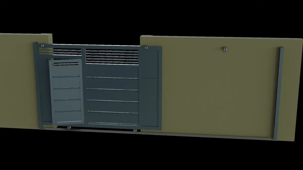 A simple and very stylish sliding gate designed and fabrication ready. Rigged for simple sliding demonstration on a home building 3d model. Ready for CG projects with materials. Part of a collection of a series of gate designs, can find all on my profile.