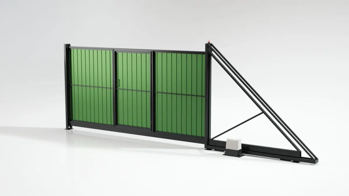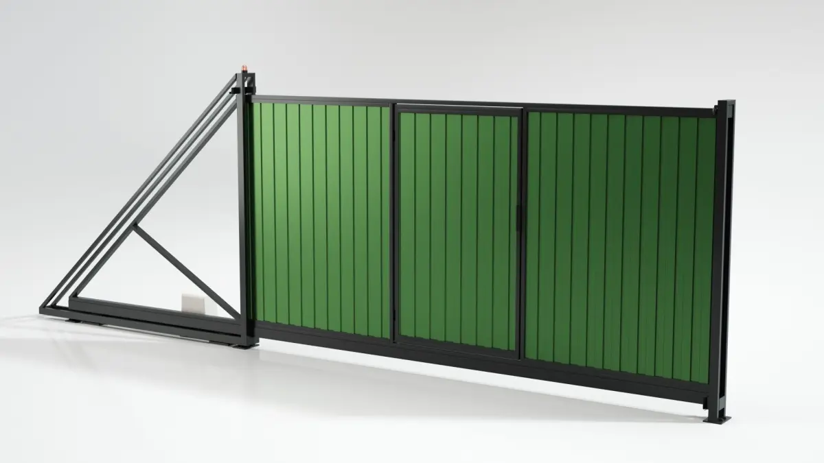 Sliding gates made of profiled sheet.