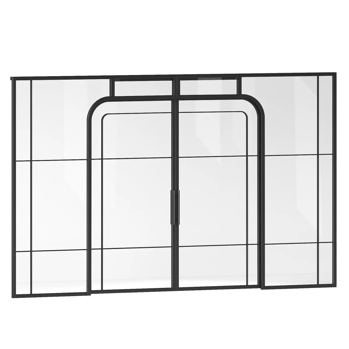 The 3D model contains a sliding interior partition.Decorative room space divider.The zoning partition is made of metal and glass. Arched semicircular shape of sliding doors.The metal is made using a procedural texture. The color is easy to change.