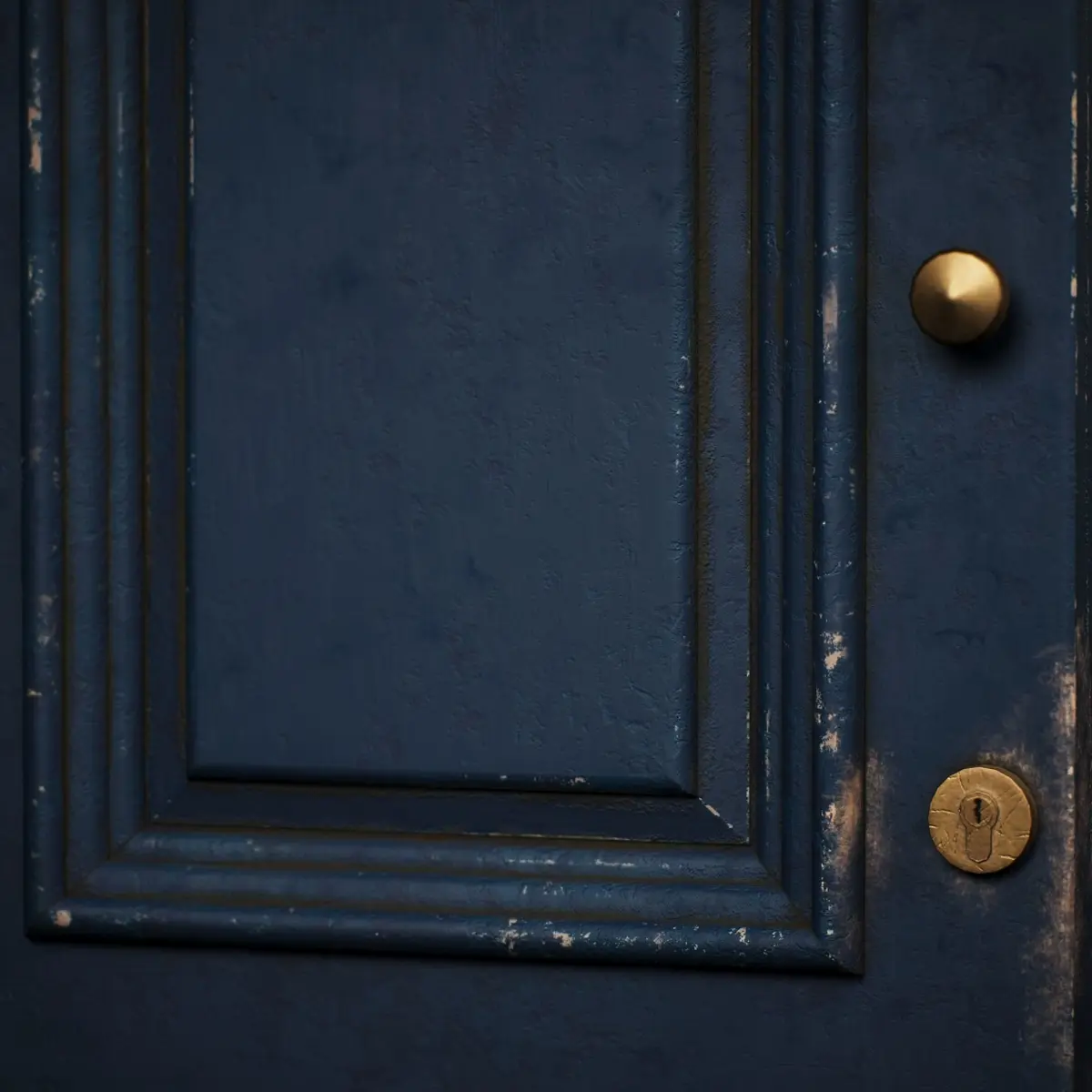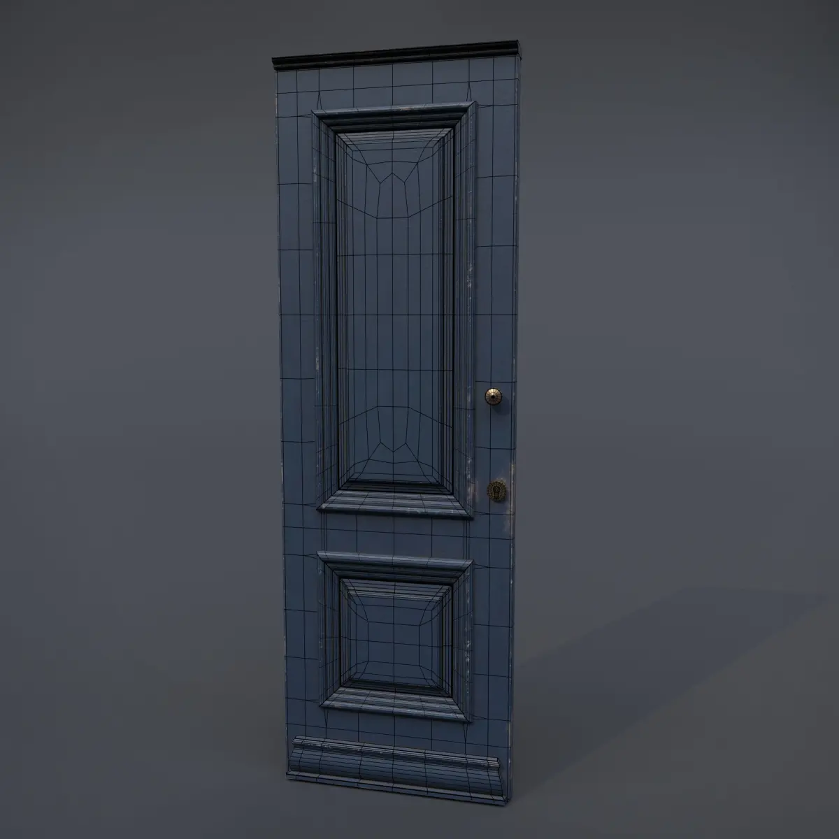 Slim Door - wood with blue paint - minimal damages - brass knob and keyhole