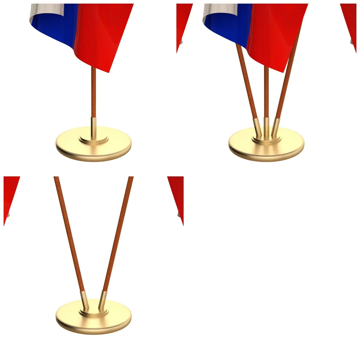 Set of four flag setups(exterior flag and three different office flags).