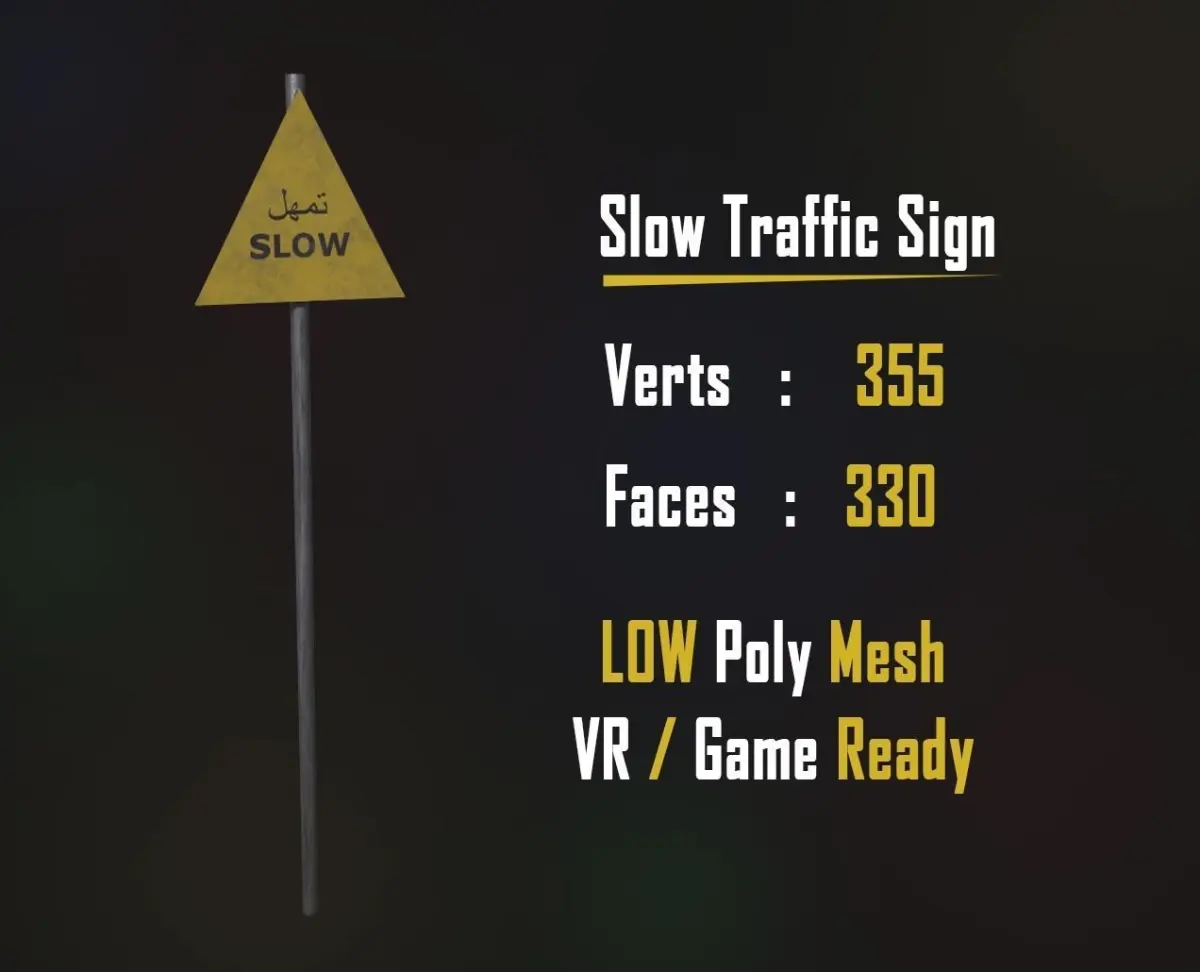 Slow Traffic Sign Low Poly Mesh , Textures are ready for Unreal Engine 4 Basecolor + Roughness + Metallic + Normal Map + AO.Made By : Rush Studio / Ali Aweda.Folow us on our pages for more free models