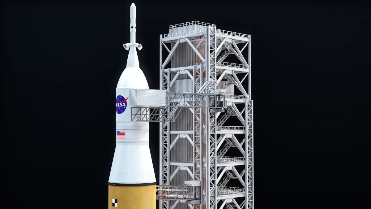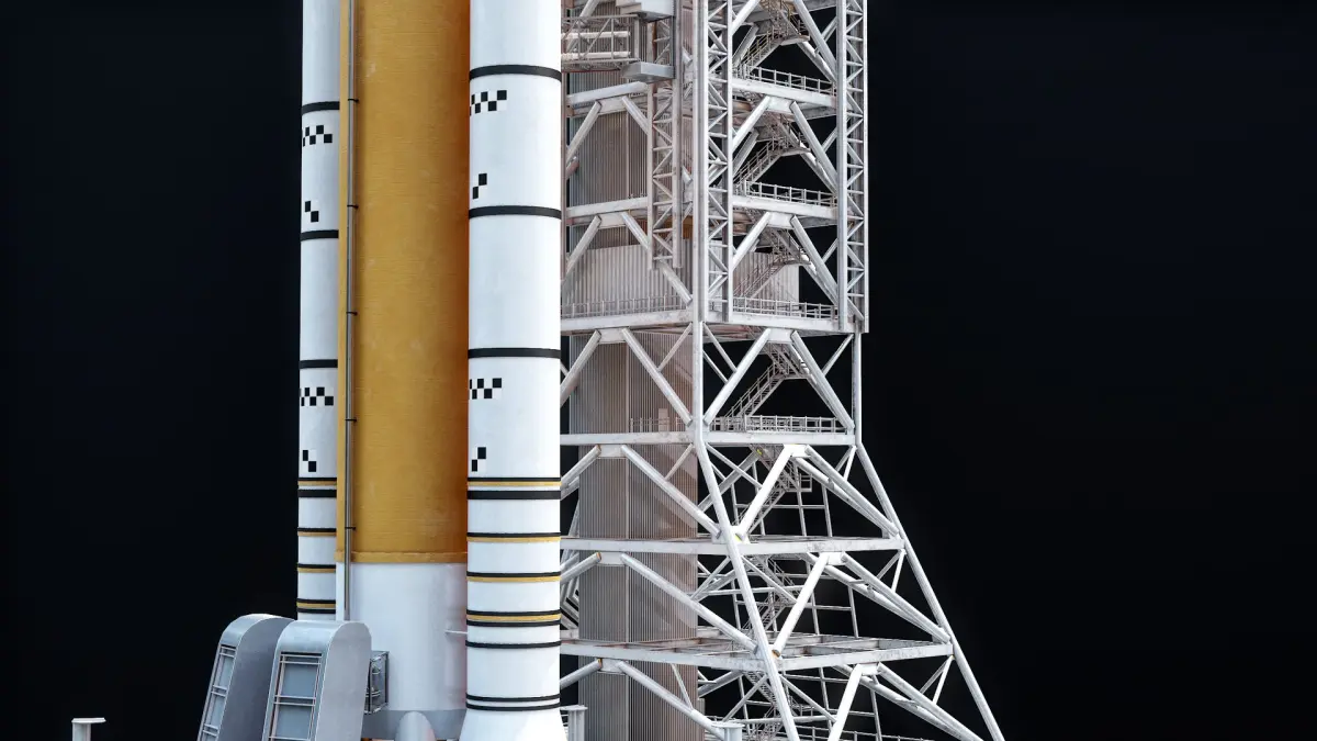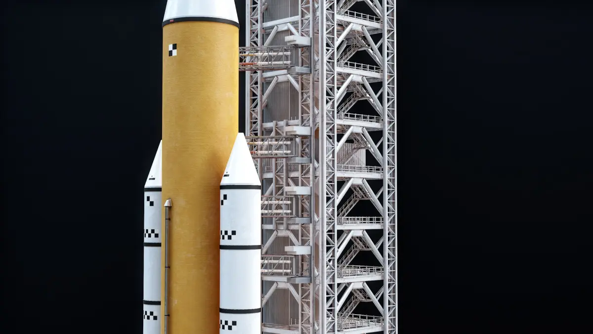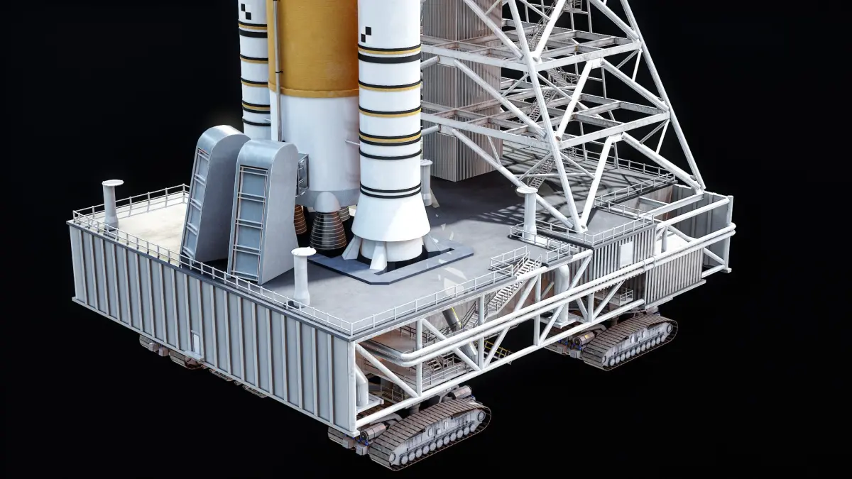 Realistic realtime high detailed NASA SLS Mobile Launcher Platform Transporter With The Spaceship model with high resolution textures and PBR maps.