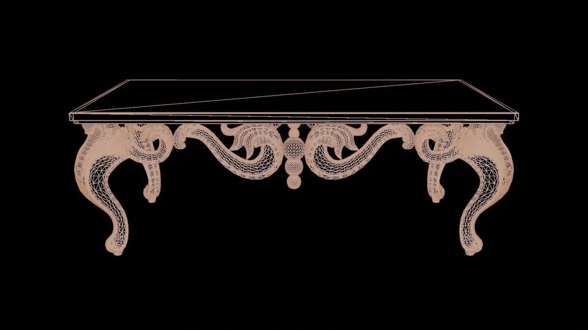 Small baroque table , simplified one object , non subdividable triangulated mesh.