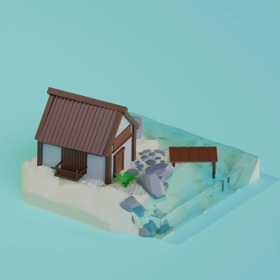 beach hut, tropical house, small house, wooden hut, seaside home, beach model, game asset, 3D architecture, tropical environment, vacation house, seaside hut, low poly, game design, summer vibes, cozy home