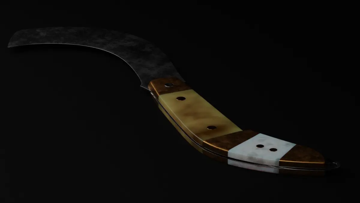 A model of a small sickle, decorated with brass and bone. The low poly version is available in the blend file. It was made in Blender and the materials are set up for cycles/Eevee. I've exported all the textures needed for a metalness workflow. If you require the specular workflow maps please feel free to message me.