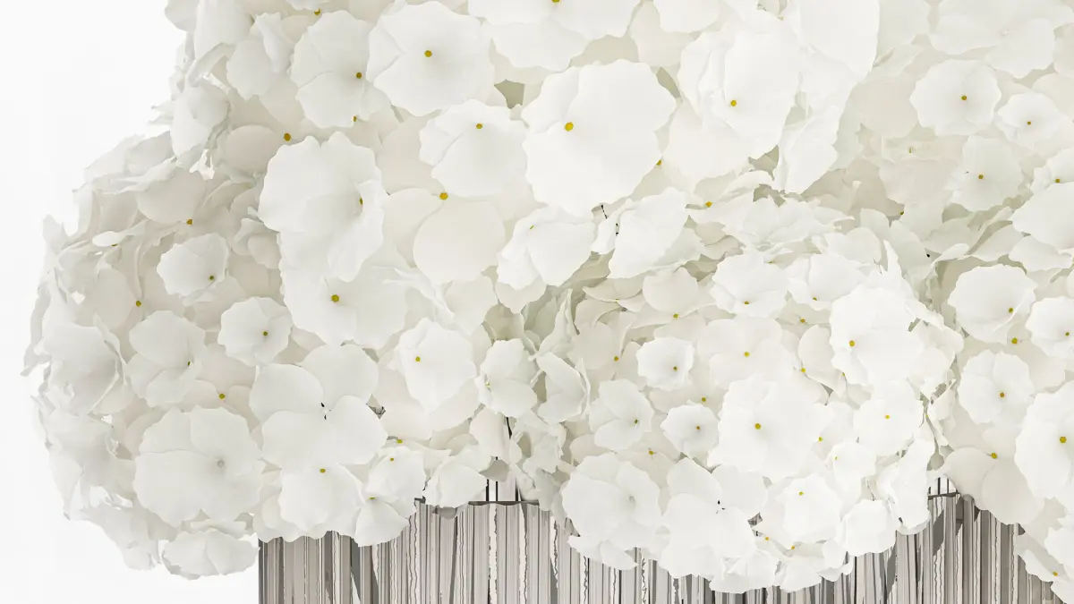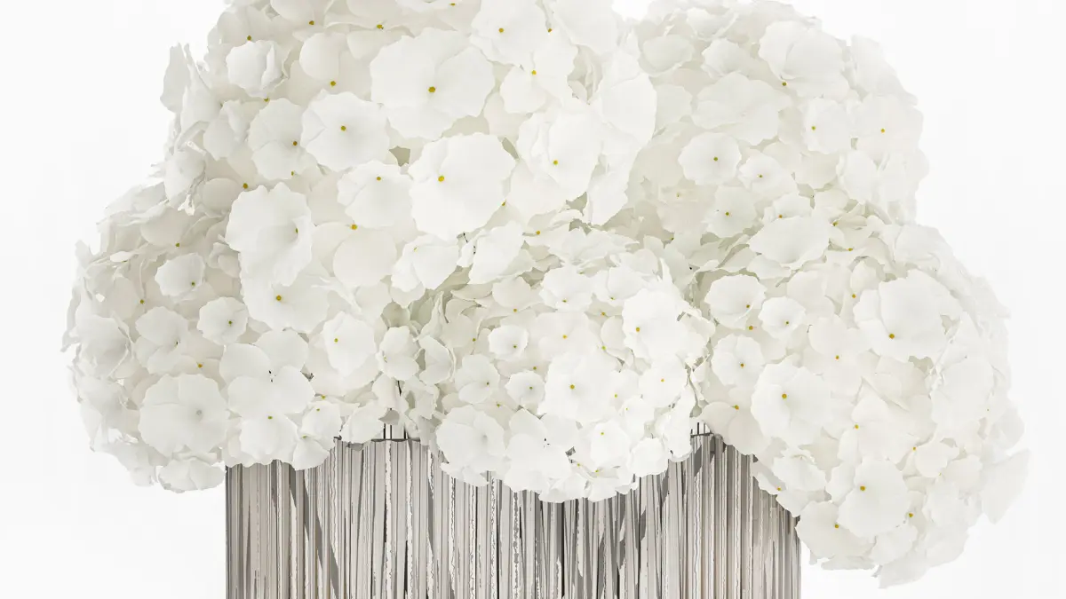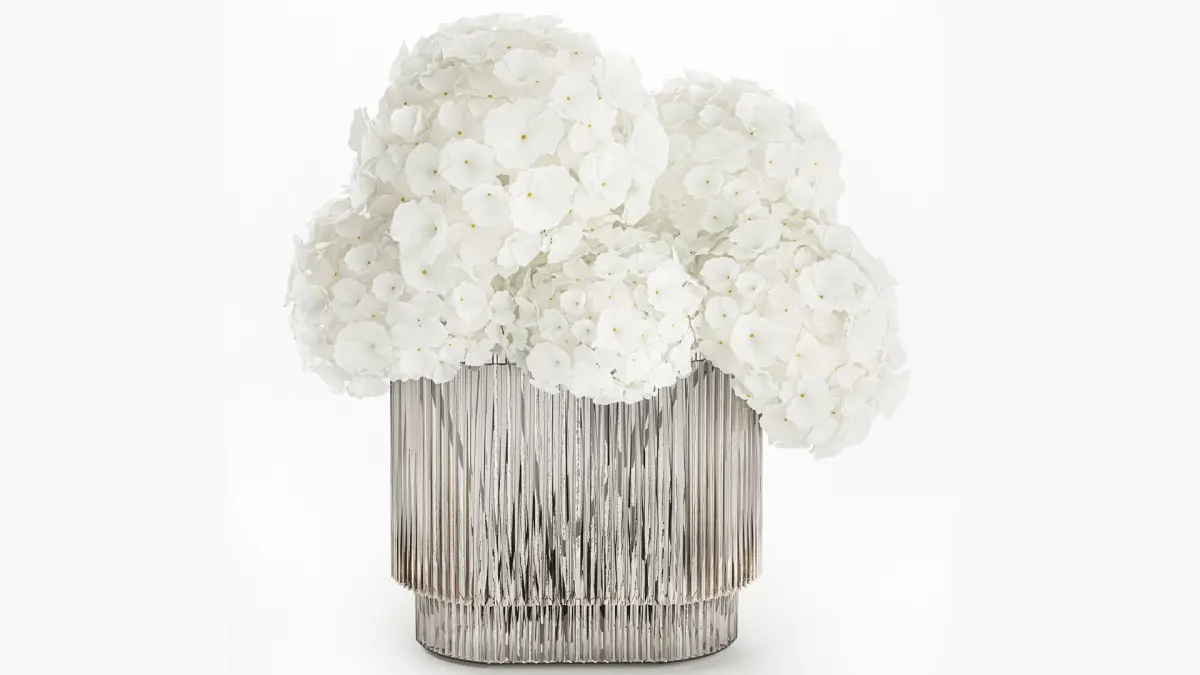 Beautiful small minimalist bouquet of white flowers in a modern glass hydrangea vase. Set 362.Spring bouquethydrangea - hydrangeavase - 2.hm, H&M HOME