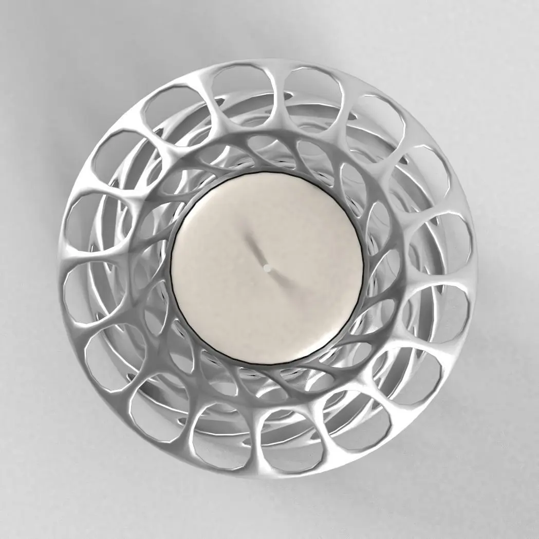 This small candle holder was made in Blender and is real life sized (approximately 7cm in diameter).