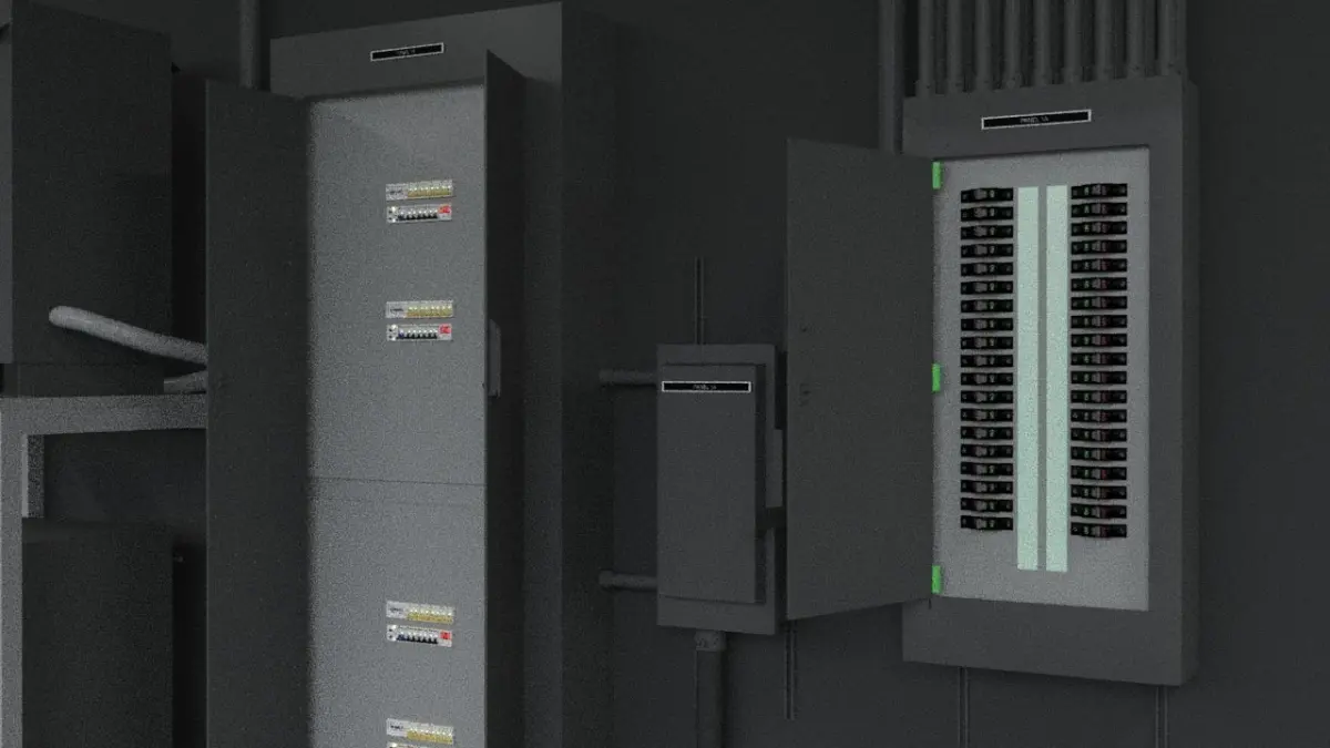 Small electrical room Equipment. 3dsmax 2021 model for electrical small branch electrical roomsConduits and fittings Distribution panel and Branch panels. small transformers small safety switch/enclosed breaker 2 pull boxes with covers breakers and panel doors are ready for animation rods, straps, and supports for conduits in model.flex conduit and transformer rack standsthis model has no texturestested in blender 2.93