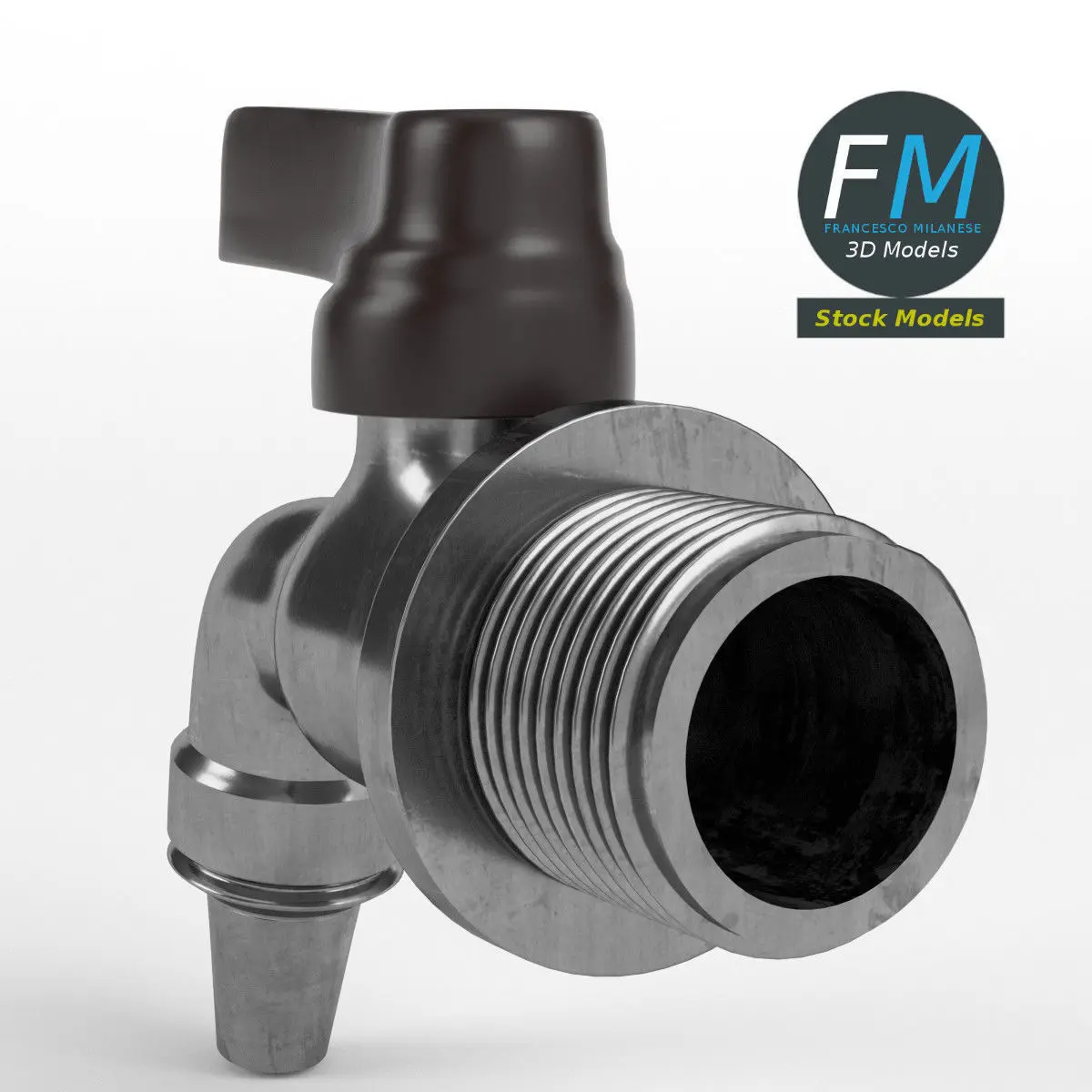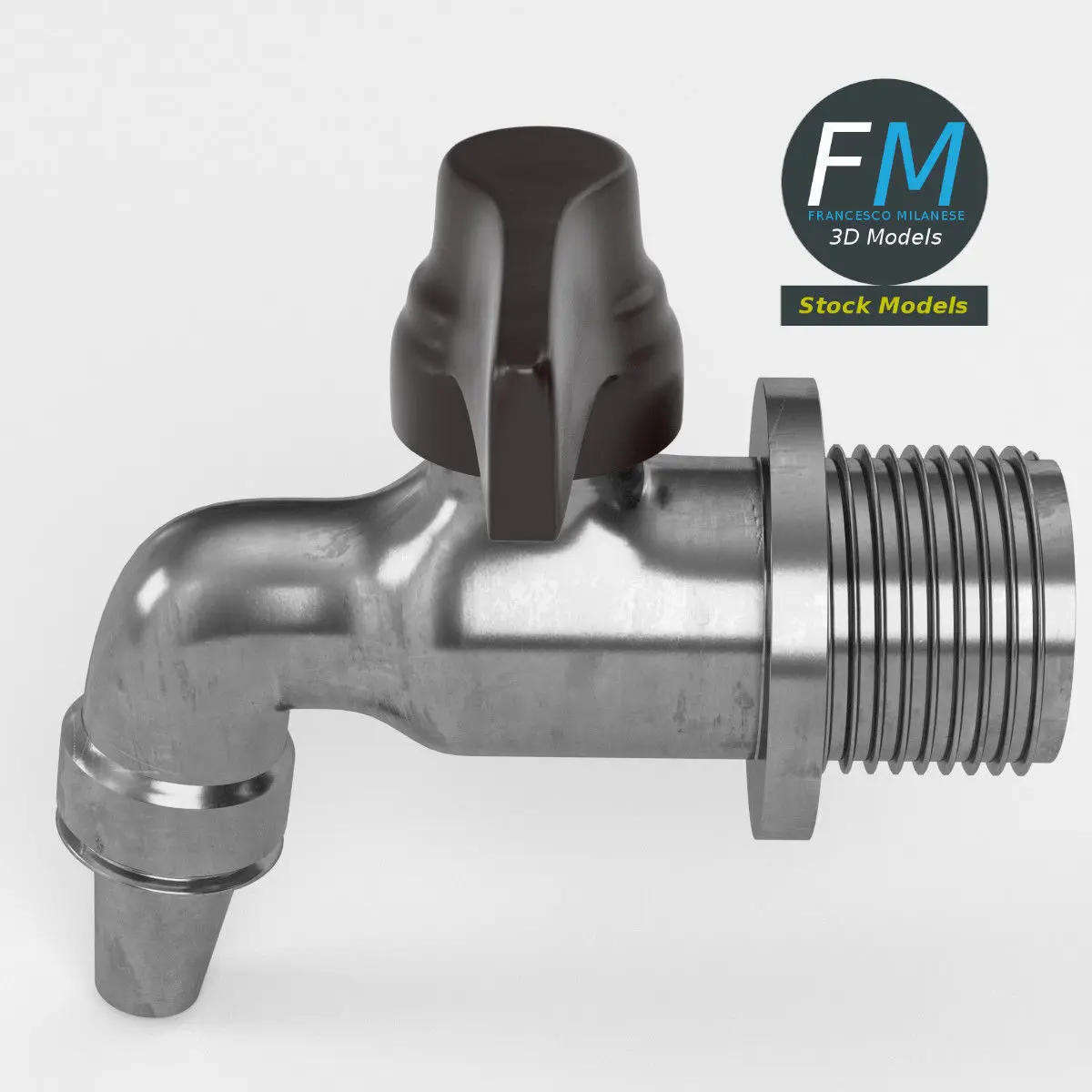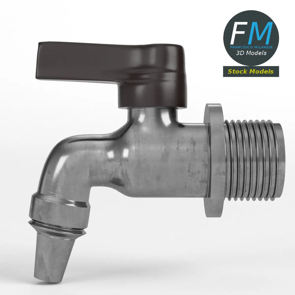 Small faucet 3D Model. 2 individual objects (faucet, lever; so, you can easily rotate or even animate the lever), sharing the same non overlapping UV Layout map, Material and PBR Textures set. Production-ready 3D Model, with PBR materials, textures, non overlapping UV Layout map provided in the package.Quads only geometries (no tris/ngons).Easily customizable: UV unwrapped geometries, so you can create new Textures (or modify the existing ones) using the UV Layout maps provided in the package (as png with alpha).Each Object, Material or Texture provided in the package has a unique, meaningful name.Made in Blender (Cycles / Eevee materials) then exported to OBJ and FBX; materials and textures made in Substance Painter, exported for PBR, V-Ray, Unity, Unreal.PROMO IMAGES: the first image has been rendered in Cycles (or Eevee) for Blender; in particular, you can find 11+ promo images in this description: