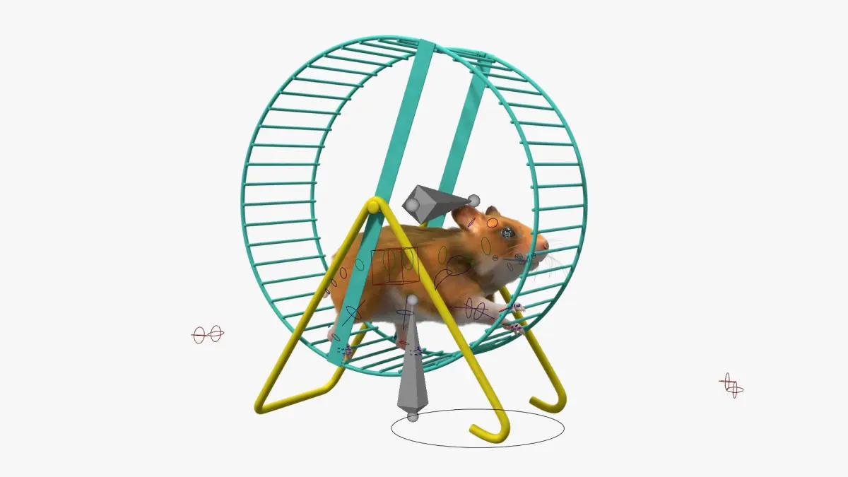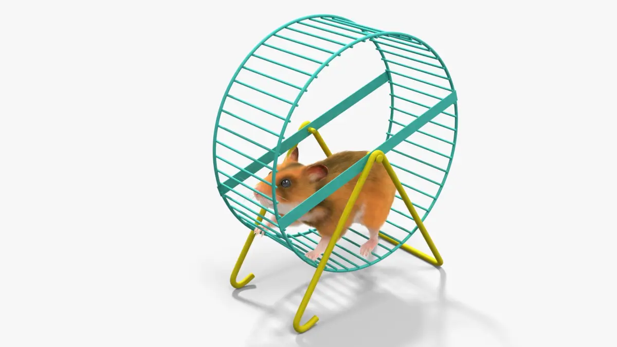 Small Hamster Runs in Wheel Animated Fur Rigged For Blender is a three-dimensional model of small animal in the exercise wheel, designed for use by small rodent pets.