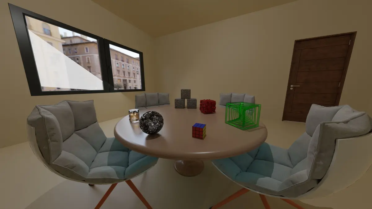 Interior scene with many 3D models and realistic lighting, this scene has realistic materials and detailed models.