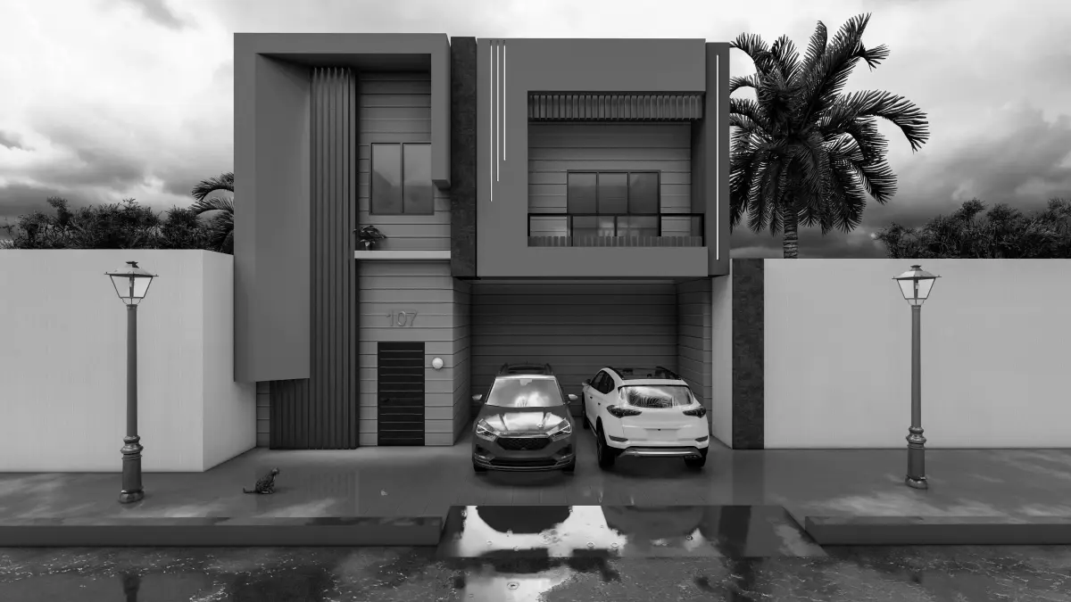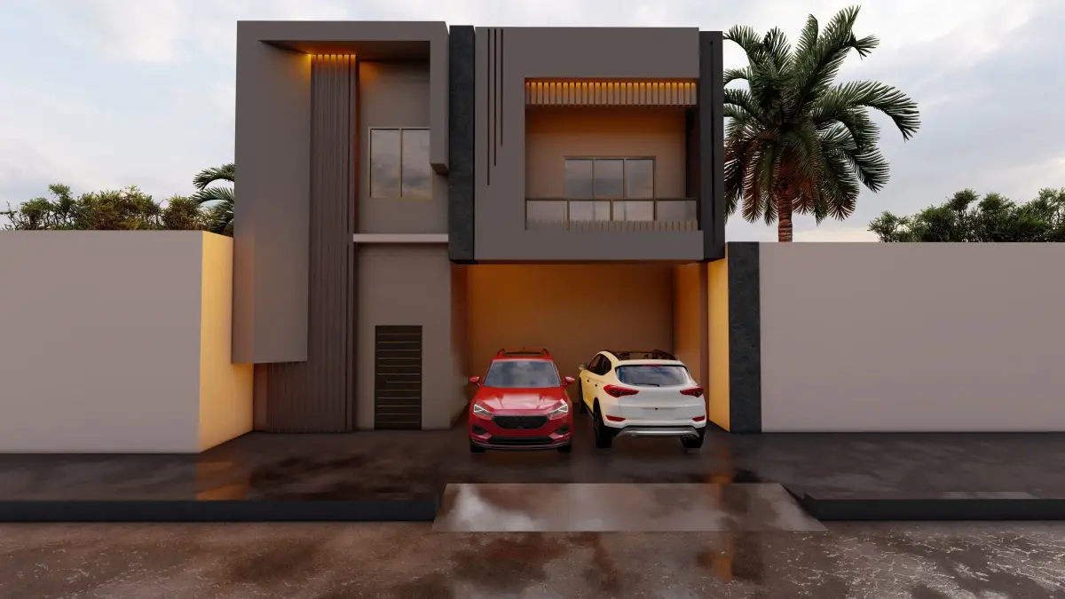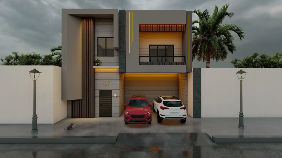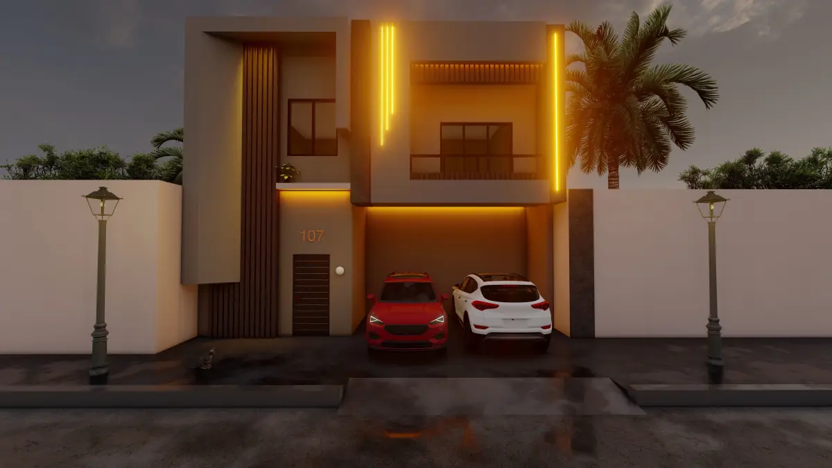 An exterior design for a small house consisting of two people to get married in, with a modern contemporary impression of the now famous Kasniyeh neighborhoods that currently exist, and it also has simplicity in design and is proportional to the setting sun.