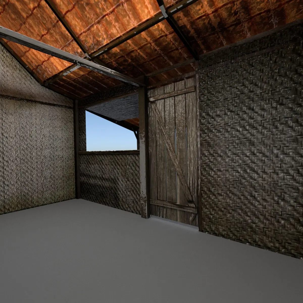 This is a small house or a hut with traditional bamboo wall. The design is base on traditional house in most vilagers in Java Island in Indonesia.