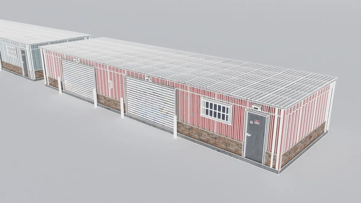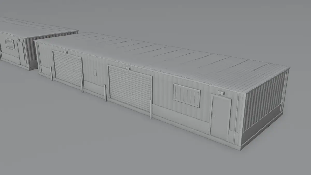 This Small Industrial Utility Garage is perfect for any warehouse, factory, airport, or commercial setting. The model is viewable from all angles and distances and comes with 3 texture variants for more useability.