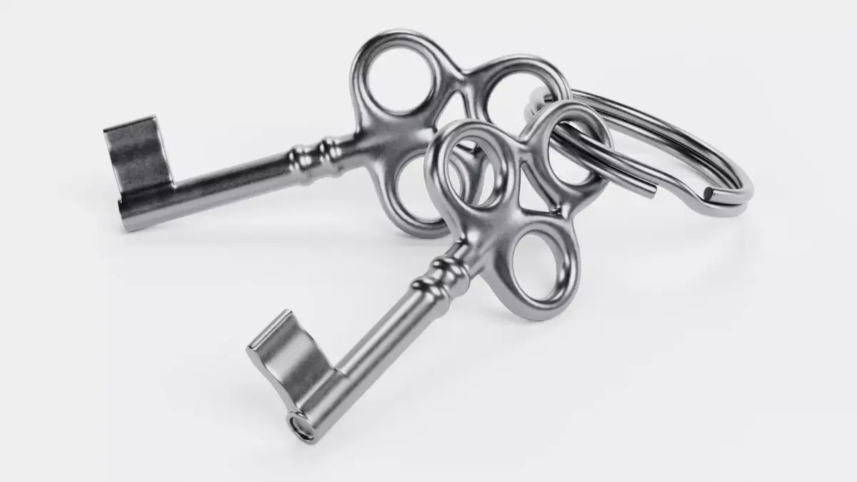 - Duo of keys with a distinct trefoil ornamental motif