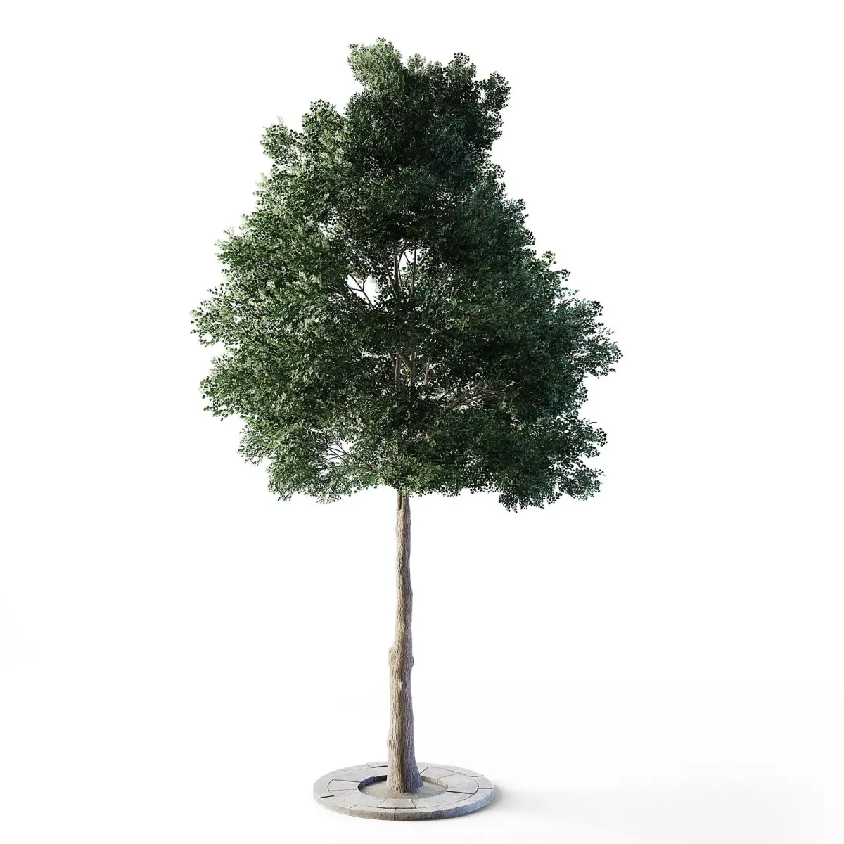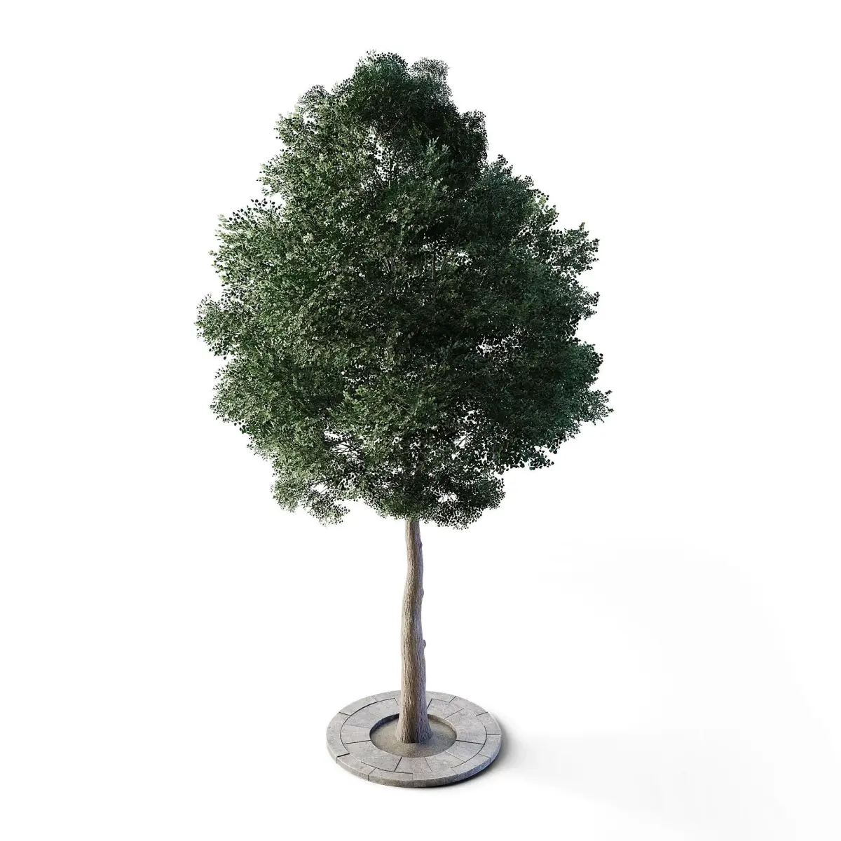 Small leaved lime tree placed in a round stone planter. Height: 5m.