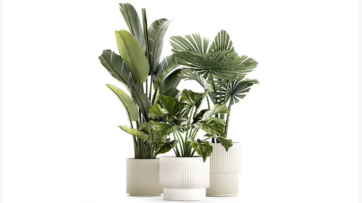 Collection of beautiful small plants in white modern pots with Strelitzia, Licuala mangrove fan palm. Set 1436.Decorative plants for outdoors and interiors in white pots and flowerpots.Houseplantsexotic plantstropical plantsbanana palm - Banana palmRavenala madagascariensis - RavenalaStrelitzia - StrelitziaLicuala spinosa - mangrove fan palm, is a species of palm in the genus LicualaLikuala biglicuala bintulensis