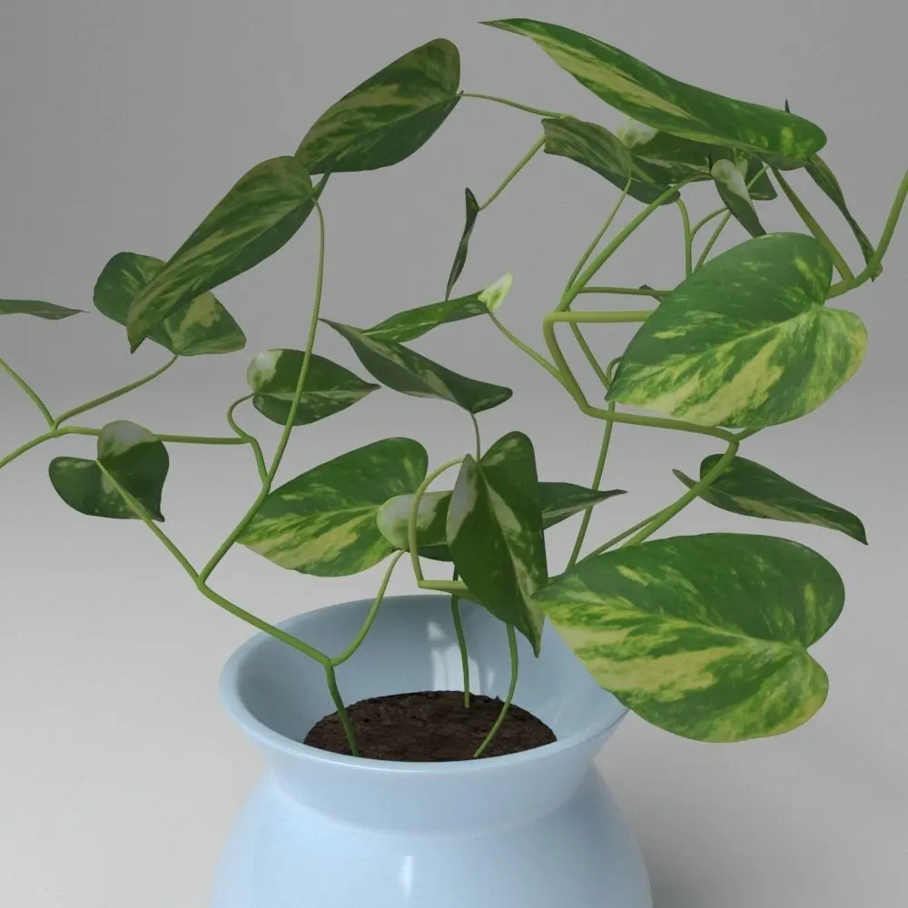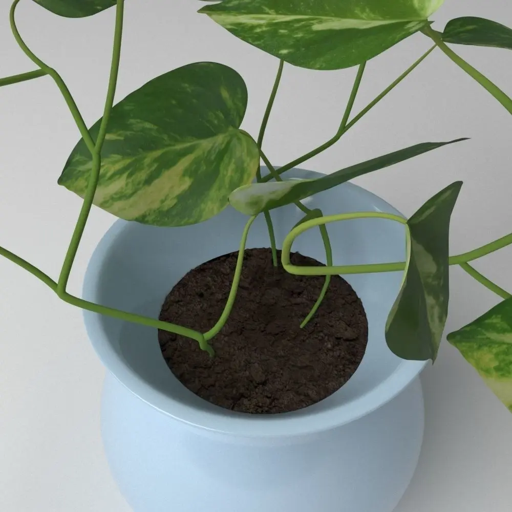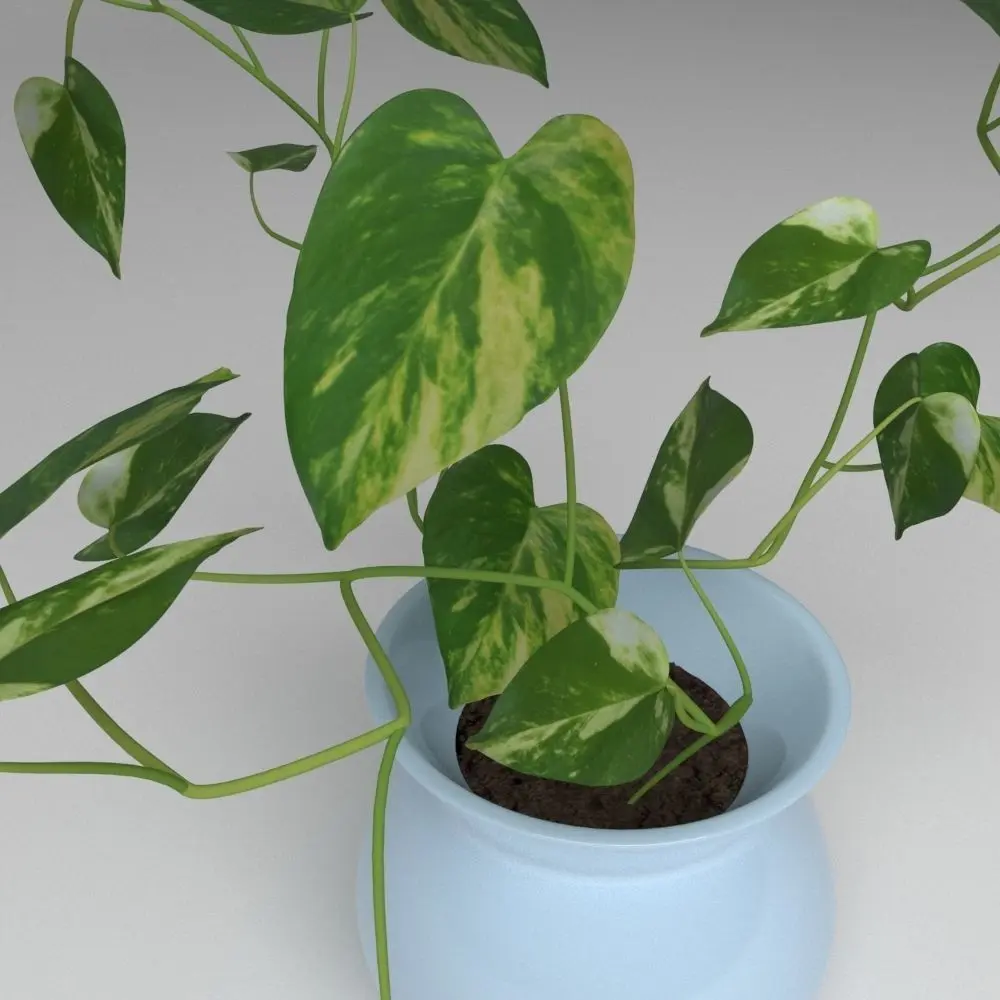 This model of a small pot potus, bring high definition textures, photos taken by me. You can modified the position of the leaves because they are individual objects. All of them collapsed, you won't have problems.
