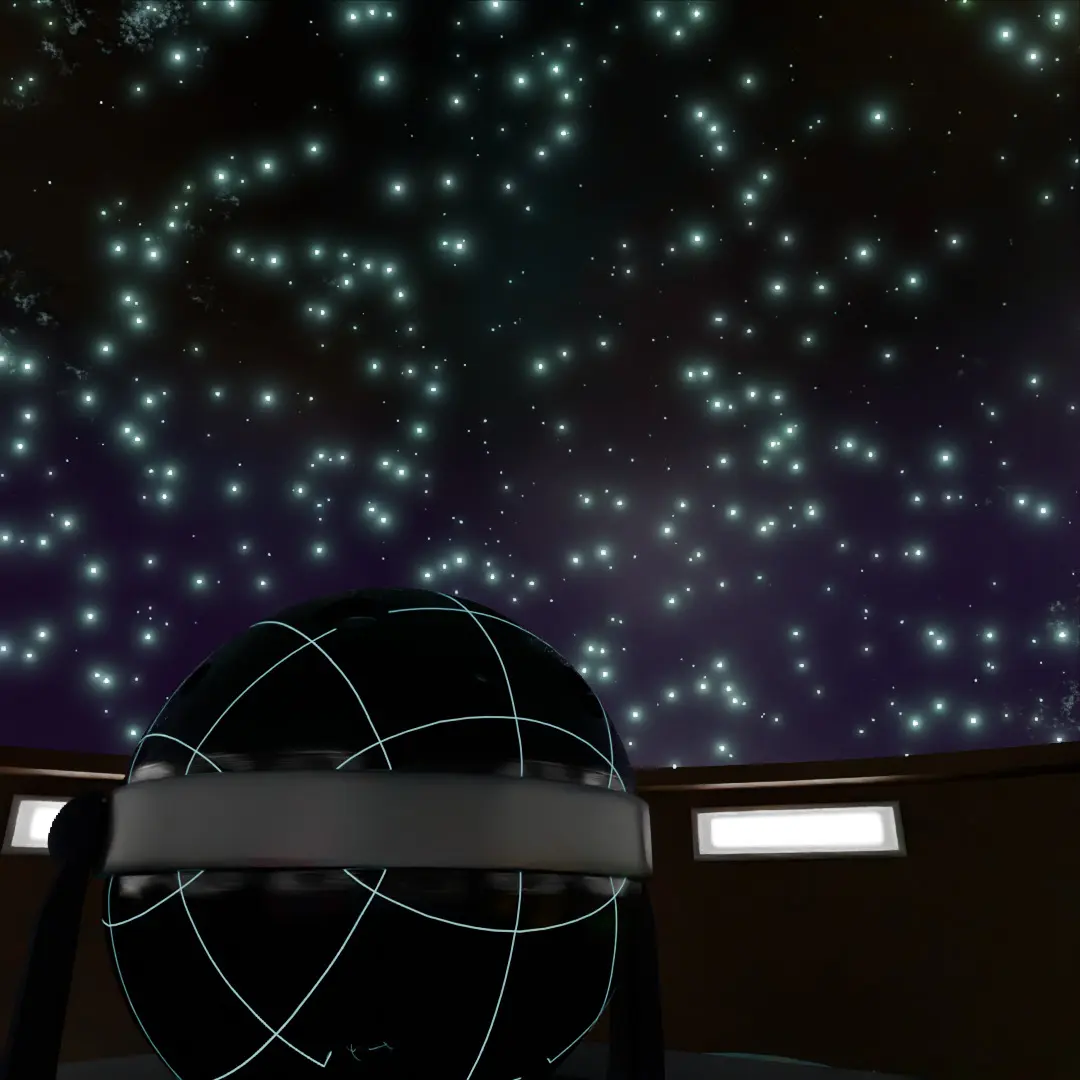 Carefully modeled in Blender, the “small room of the planetarium” is a fantastic space model consisting of stars projected on the domed ceiling and warm lighting. It is ideal for an immersive visual experience.