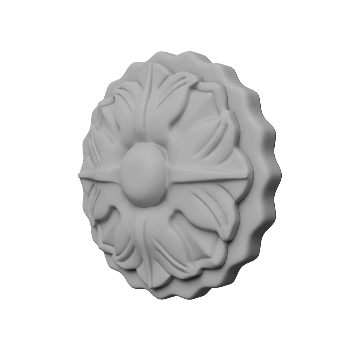 This is a model of a rosette. Traditionally rosettes are made from stone, plaster or wood and used for decoration on architectural features for interiors and exteriors.