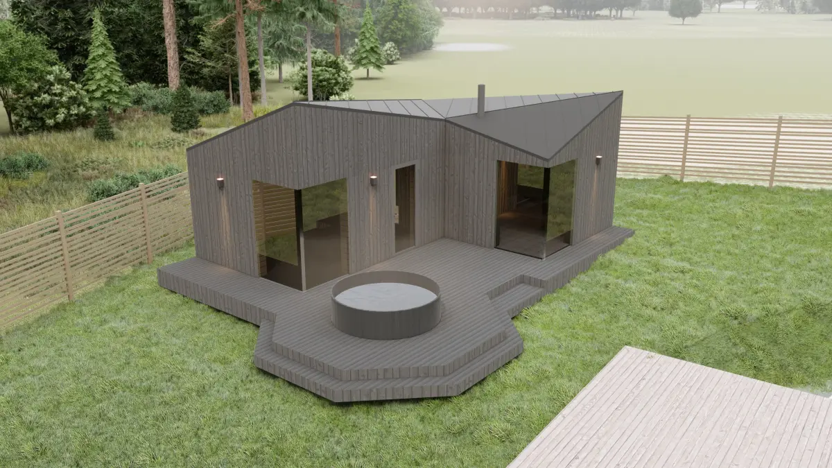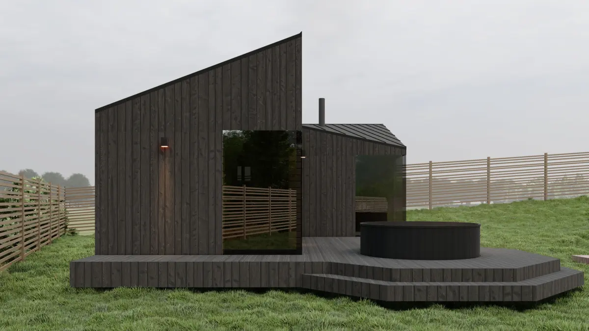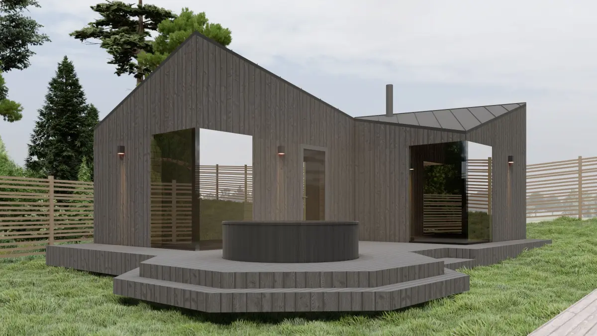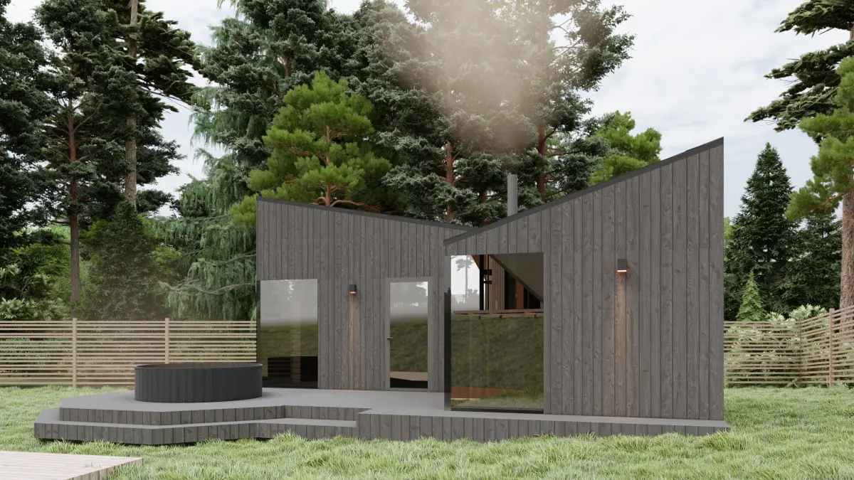 Sauna in the Scandinavian style. Finishing - burnt wood (Shou Sugi Ban).3D models are made in Archicad 25 version. The .pla archive is attached. Also, such formats as: AutoCAD (.dwg).obj3D Studio (.3ds), Sketchup 8 (.skp) archcad 25.plaLumion 10 render/ File included