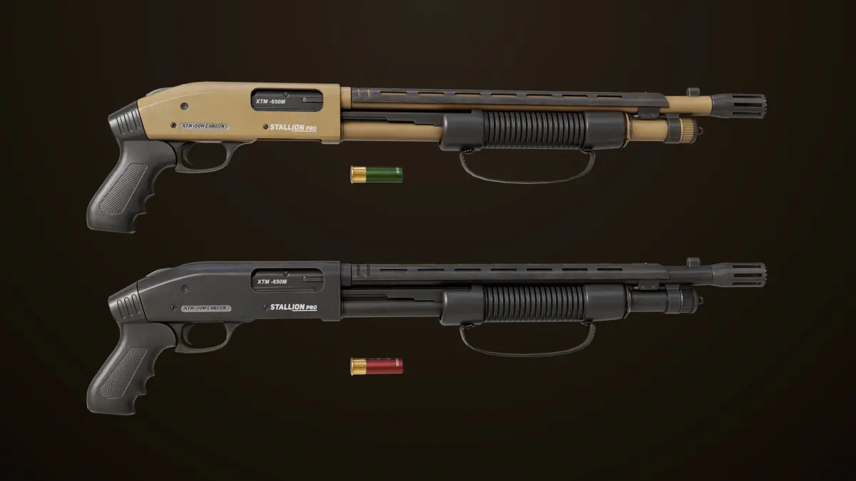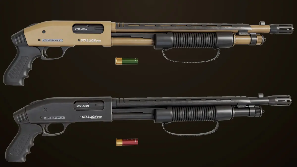 The Photorealistic 3D model of SmallShotgun 01 Black and Sandal With Single Material, This model is suitable for any visual production - broadcast, high-res film close-ups, advertising, games, design visualization, forensic presentation, etc