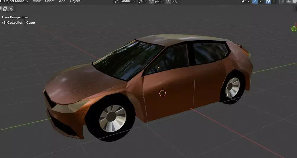 The model features a clean mesh topology, ensuring that the surfaces remain smooth and free of shading artifacts, which is particularly evident in the way the body panels catch the light. Despite its low-poly nature, the vehicle's personality is brought to life through its realistic materials. The copper-toned metallic paint has a subtle texture that mimics real-world automotive finishes, complemented by emissive lighting on the headlights that gives the car a ready-to-drive presence.