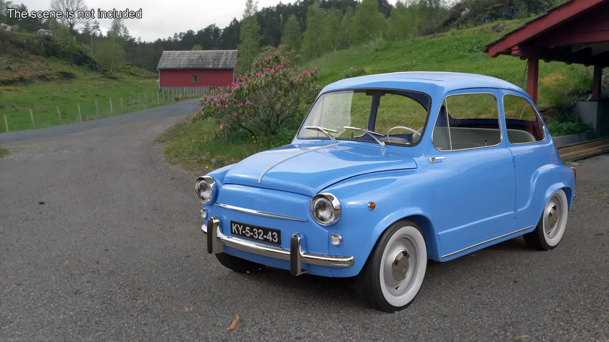 Small Urban Hatchback Blue is a three-dimensional model of a classic compact car, ideal for nostalgic enthusiasts and urban settings.