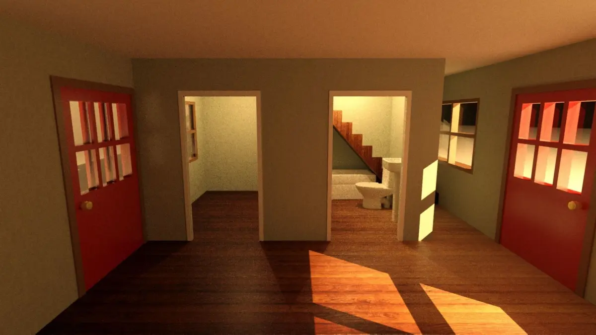Open plan livingroom space for living room area and kitchen.