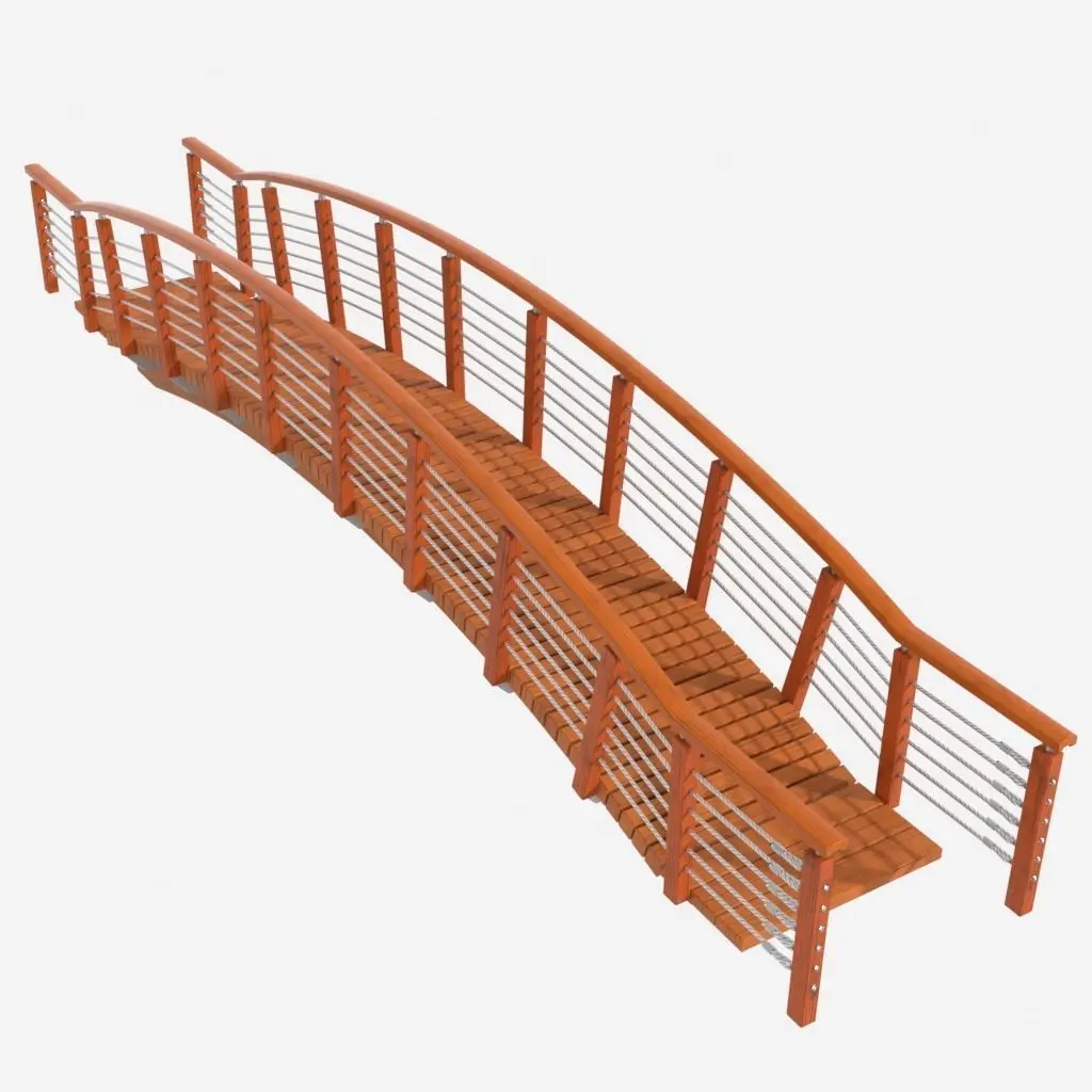 Small Wooden Pedestrian Bridge designed for Architectural renderings and similar. You can also use it for other purposes. It is a non-subD model uses quads and tris. Where it was needed I defined vertex normals to get proper shading. Initially modeled in MODO and carefully converted to 3ds max and Cinema 4D. The UVs are overlapping but only to economically use the textures.Textures are png format and the wood texture was done procedurally in MODO, exported/rendered to other formats. All renders are from MODO.