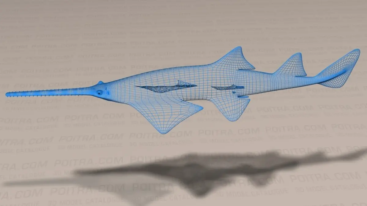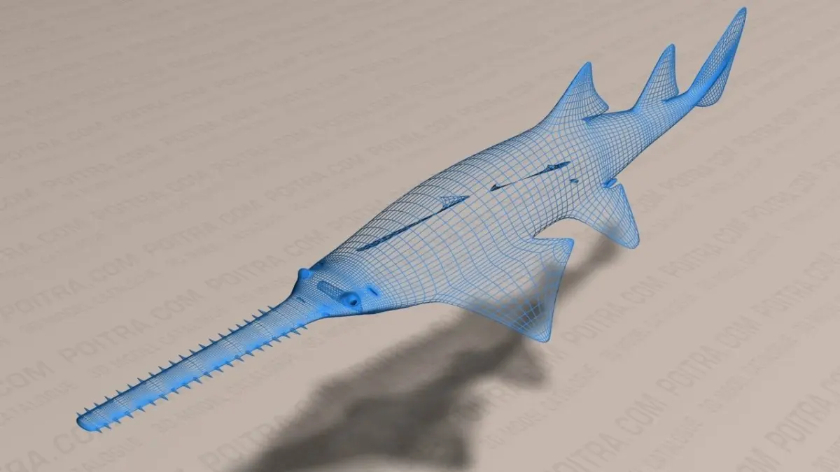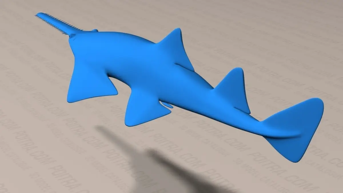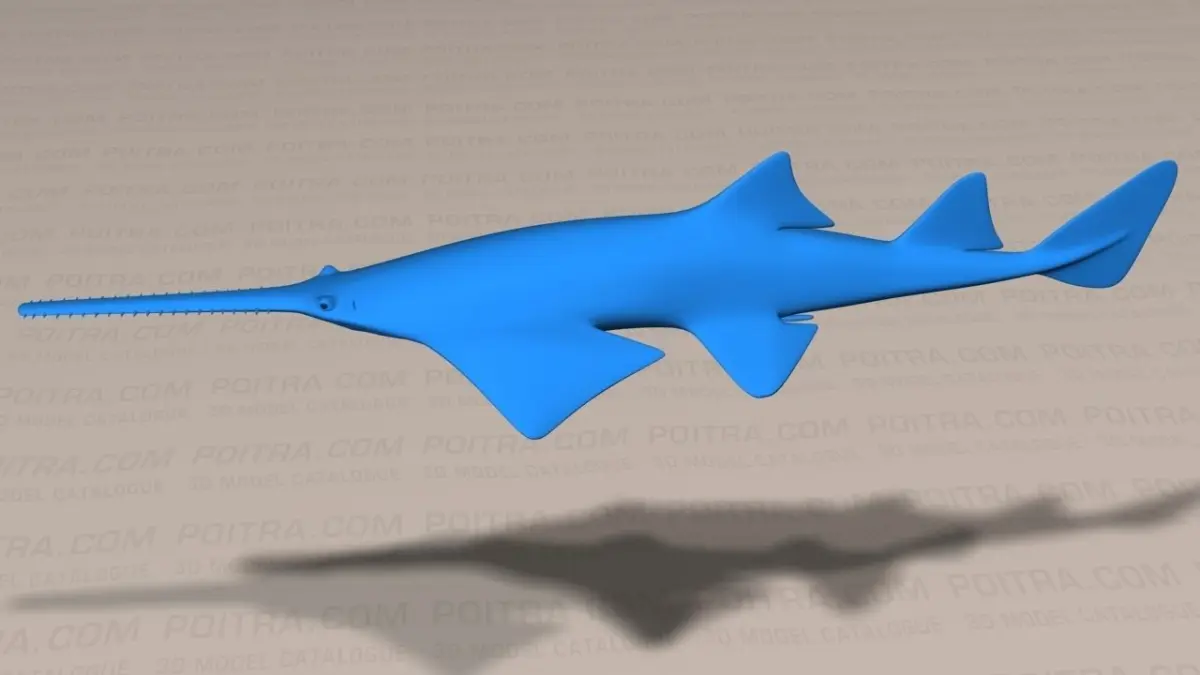 3D Model Smalltooth Sawfish (Pristis Pectinata) Adult Male (Non-Textured 3d model) - also known as a Carpenter Shark or a Comb Shark. The sawfish is related to rays and sharks, and lives in ocean/salt water, commonly found in the Alantic Ocean and off the coasts of Florida. Length is approximately 18' 3.6" or 5.58 m. A fully textured version may be available online (sold separately) or by custom request (contact us!).