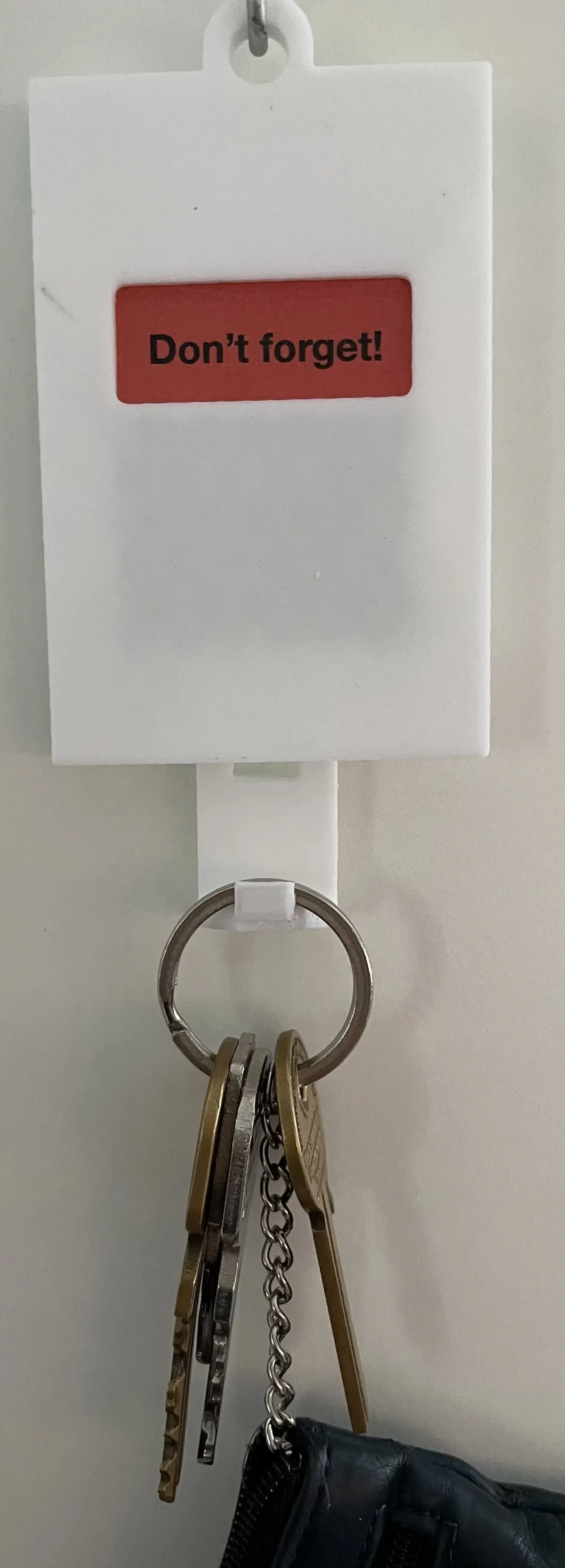 Mount hanger near the door and hang whatever you want and it will remind you to take it with you.
