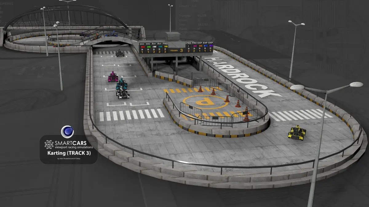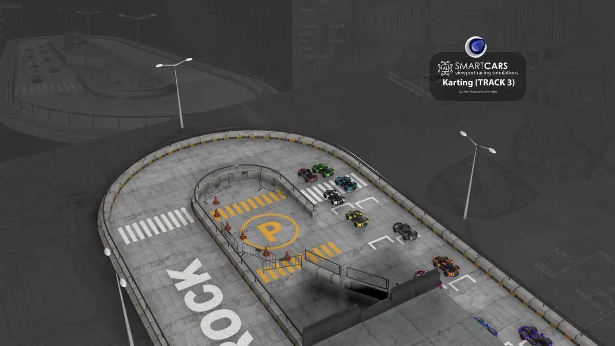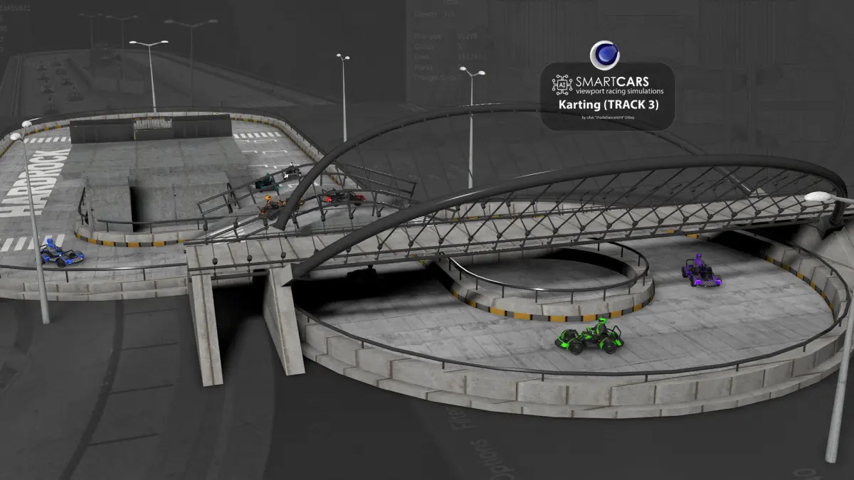 This is a viewport AI go kart simulation. It is assumed that you use this software very well and have a lot of knowledge. Even so, just press play and sit back and watch the animation. In the meantime, you decide what you can do. I think you immediately understood what you could change.
