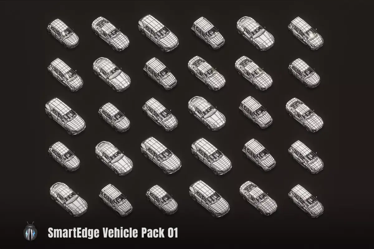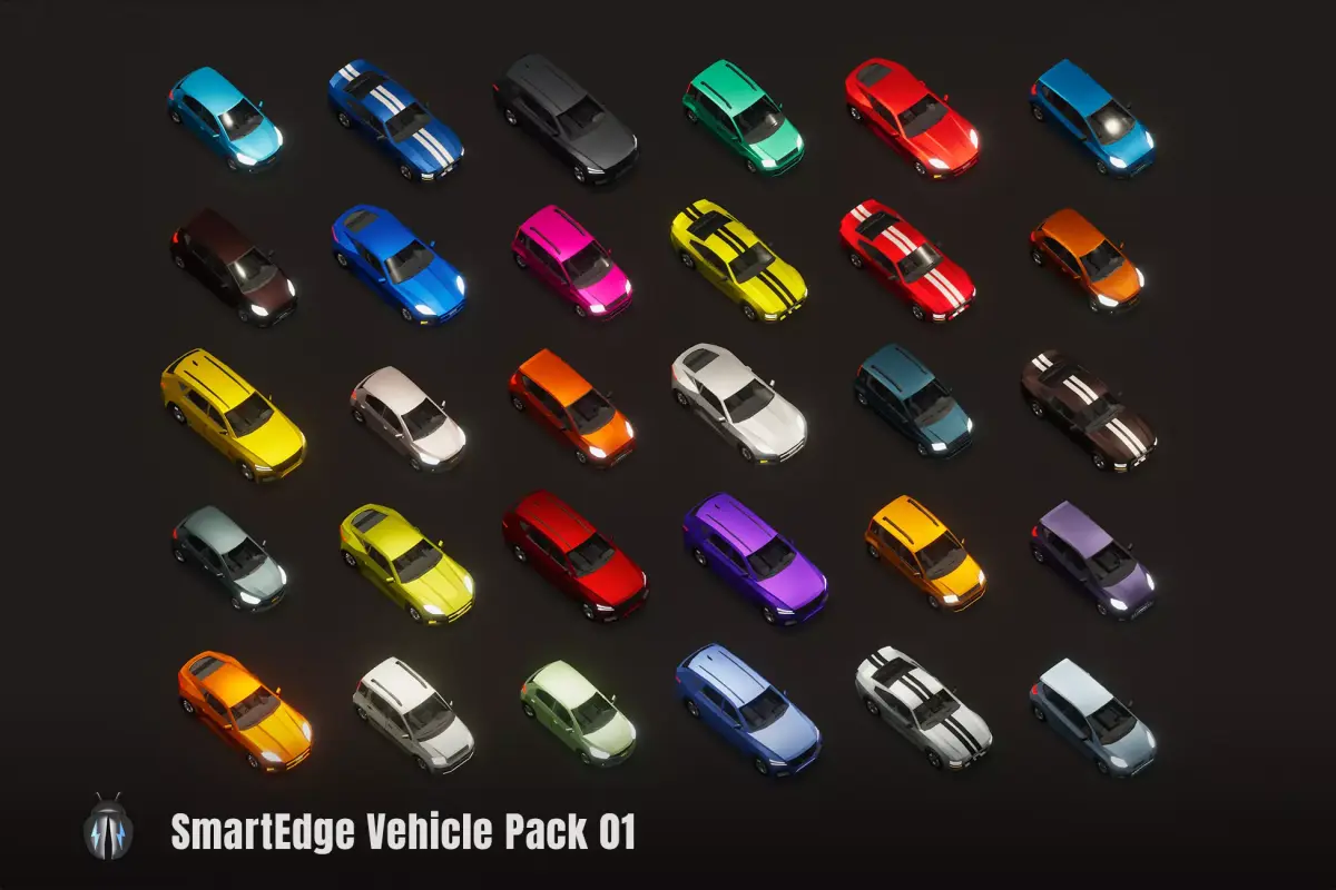 It is a pack of 30 SmartEdge low poly city car models (6 unique cars each with 5 unique color variations). Each car comes in two types : simple interior and without interior. This package does not include animations. However, car wheels, doors and steering wheels are ready to be animated. Car wheels of each car are separated for animation. For cars with interior, along with the car wheels, doors, and steering wheels are also separated for animation. These city cars are perfect for any city / urban environment or racing game projects.