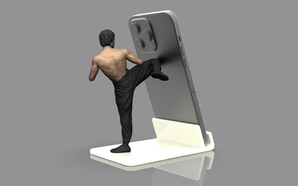 Hi guys, I bring you another strong style phone holder from Kungfu legend Bruce Lee. Let's go to the link below to download and print the files right now. There are many base sizes corresponding to your phone thickness from 8mm to 14mm. Please check your phone thickness and choose the correct print file. For example base_8mm, the maximum phone thickness is not more than 8mm including the case.