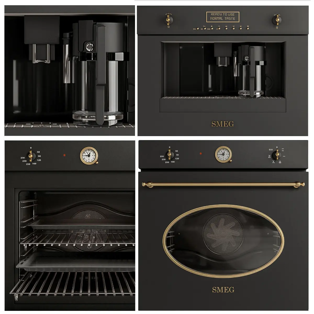 Decorative wall hood (90cm)https://www.smeg.com/products/KS89AOEThermo-ventilated Oven (60cm)https://www.smeg.com/products/SFP805AOAutomatic built-in espresso coffee machine (45cm)Gas Hob (80cm)https://www.smeg.com/products/SRV876AOGHFree standing refrigerator 4 Doorshttps://www.smeg.com/products/FQ60CAO5