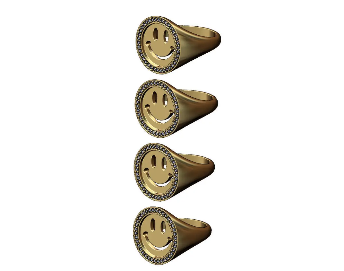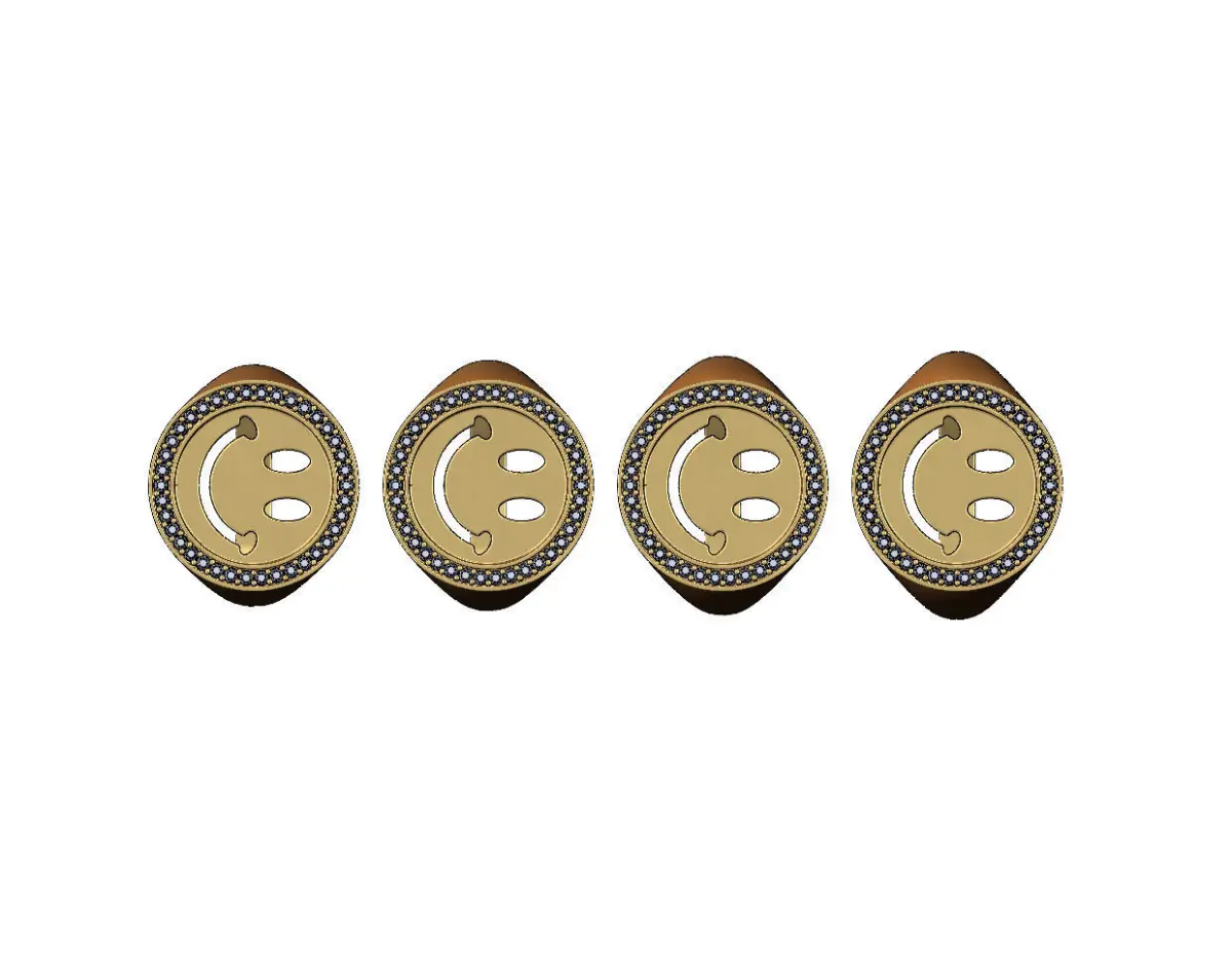 Smiley face diamond halo round signet ring