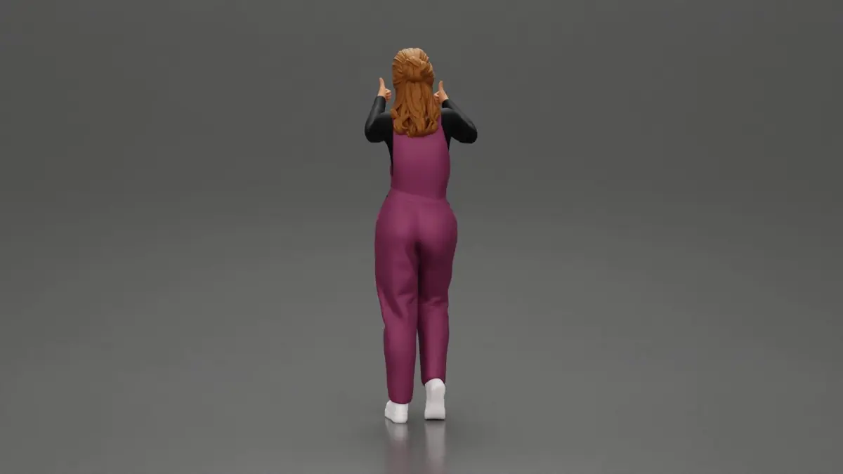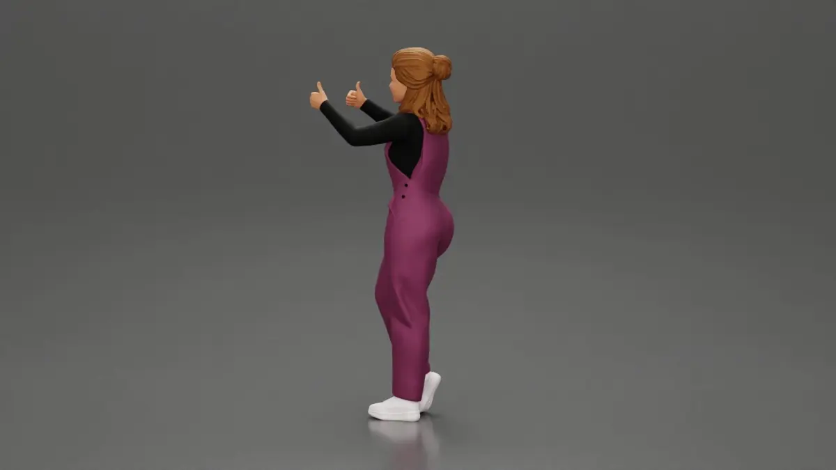 Home Catalog Smiling girl in overalls showing a thumbs up with both hands 3D print model