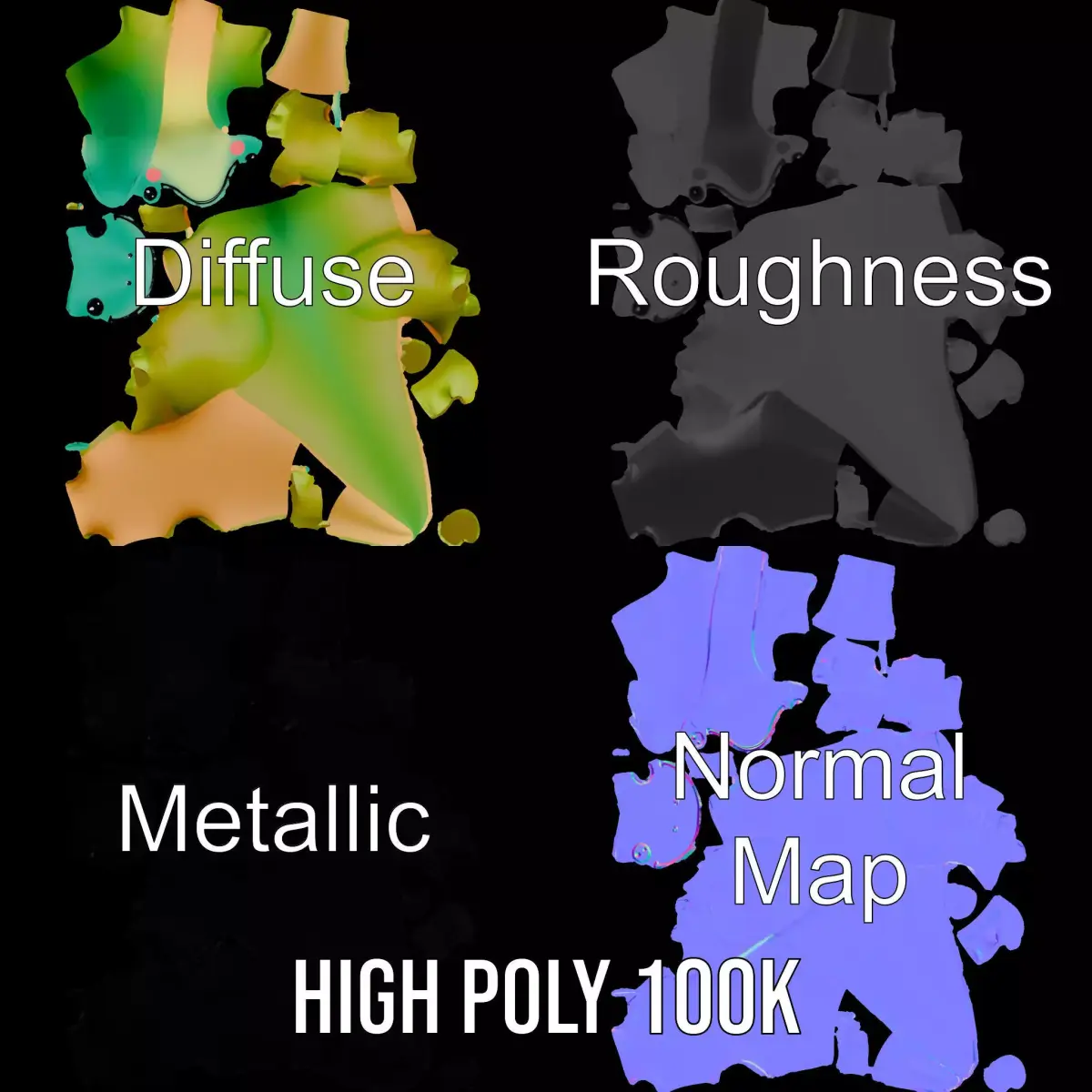 This charming model pack features a smiling green dinosaur, perfect for playful and educational scenes. With vivid colors and a friendly expression, it's ideal for kids' animation or interactive learning applications. Each model has 3 levels of detail: low-poly (1000 triangles for mobile), middle-poly (10,000 triangles for environment), and high-poly (100,000 triangles), which allows for the use of this model in production rendering (such as 3ds max, Maya, Cinema4d, Blender, Vray/Corona/Cycles and all other), game engines (Unity and Unreal compatible), and interactive presentations, providing a choice of detail based on the LOD System principle. Its PBR, Diffuse, NormalMap, and reflection/roughness/metallic textures make it suitable for any modern rendering engine. All textures are 4096*4096 in size, and models are accurately unwrapped with no overlapping UVs. Perfect for educational games, animations for kids, and virtual dioramas. If you like this model, please leave a like and comment!