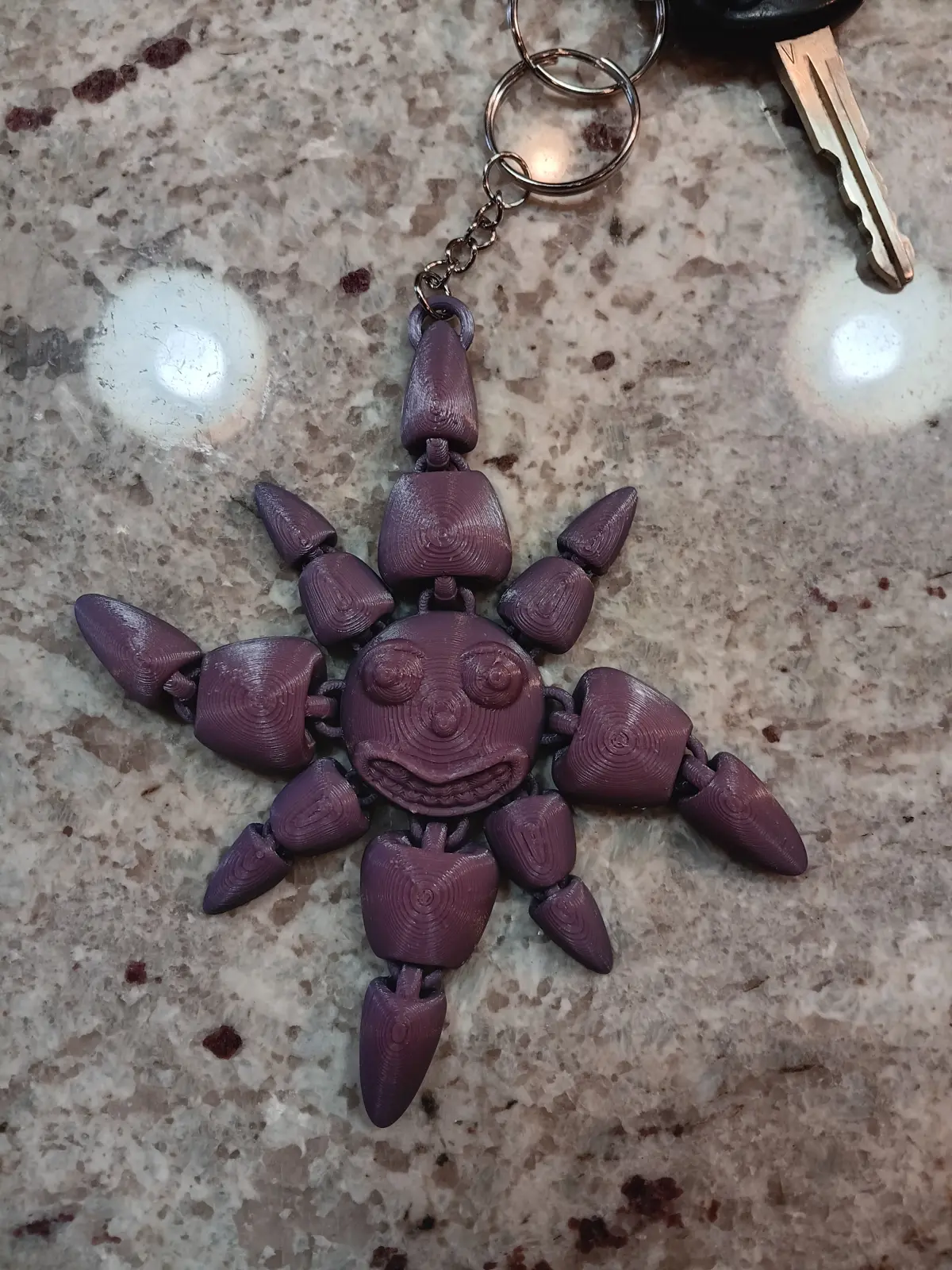 Explore this creatively designed, 3D model from Timmy Tombstone - a flexi smiling sun keychain that satisfies both your practical needs and artistic interests. This is not just a key holder; it's a fully articulated, print-in-place masterpiece, designed as a fun toy as much as a useful tool. All the links in the chain are connected, printed in one piece, offering you an innovative product for 3D printing technology. Detailed imagery provided offers a comprehensive visual of this sun keychain. The bright and sunny design instills a playful vibe, making it an ideal gift for kids and adults alike. Our designers are committed to combining functionality, creativity, and quality into one model. Discover more such unique, print-in-place 3D models.