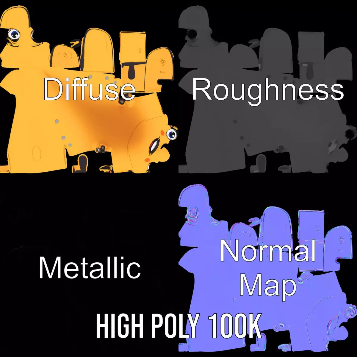 This Smiling Yellow Airplane model pack features a cheerful and vibrant cartoon-style airplane with expressive eyes and a joyful smile. Each model has 3 levels of detail: low-poly (1000 triangles for mobile), middle-poly (10,000 triangles for environment), and high-poly (100,000 triangles), which allows for use in production rendering (such as 3ds Max, Maya, Cinema4D, Blender, Vray/Corona/Cycles and all others), game engines (Unity and Unreal compatible), and interactive presentations, providing a choice of detail based on the LOD System principle. The textures are PBR, Diffuse, NormalMap, and reflection/roughness/metallic, suitable for any modern rendering engine. All models are accurately unwrapped with no overlapping UVs. Ideal for educational animations, children’s games, or promotional materials. All textures are 4096*4096 in size. If you like this model, please leave a comment and like it.
