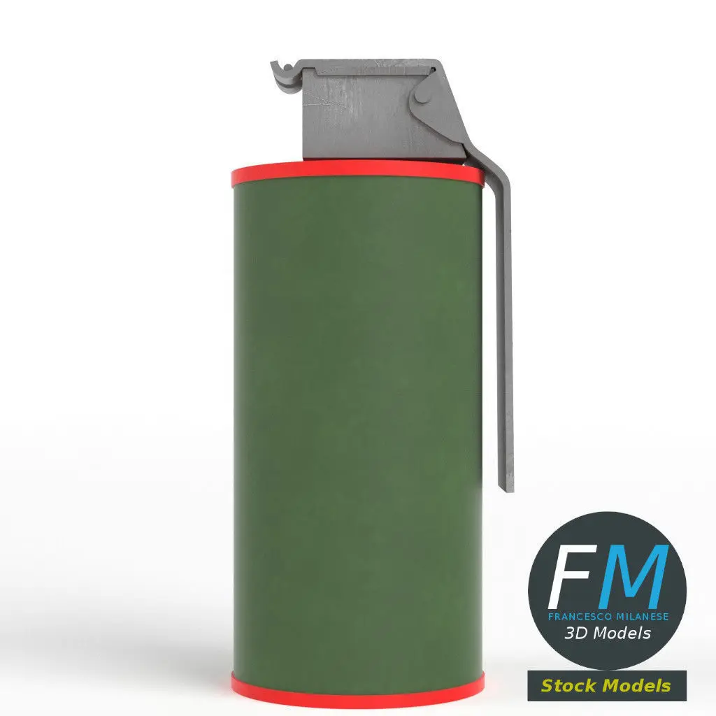 Smoke grenade 3D Model. Production-ready 3D Model, with PBR materials, textures, non overlapping UV Layout map provided in the package.