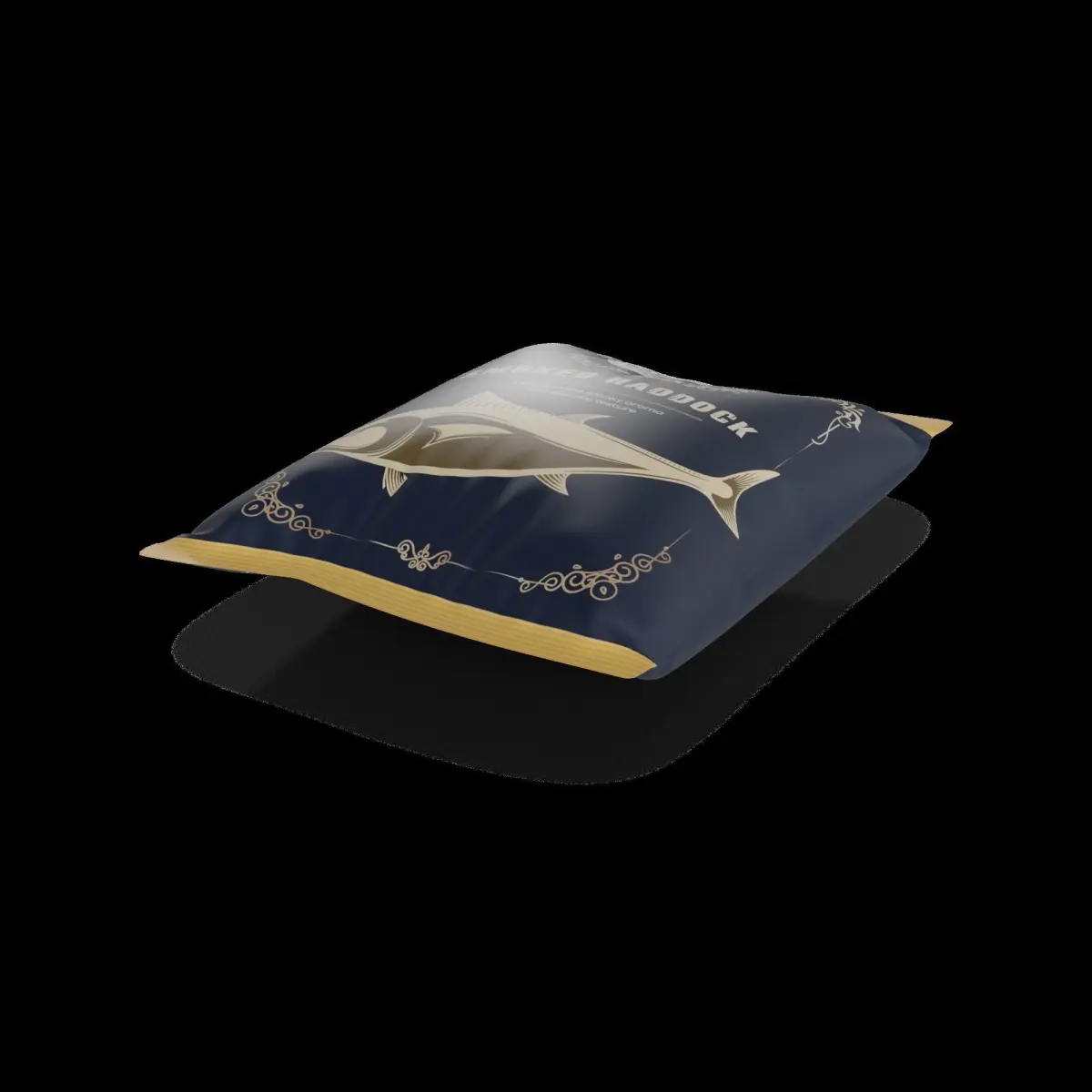 Smoked Haddock: Delight in the smoky aroma and delicate texture of our smoked haddock. Each fillet is thoughtfully packaged in a traditional brown paper wrapper, reminiscent of old-world charm. The packaging is adorned with a vintage-style label, complete with an illustration of a fishing boat and the product name in elegant script.