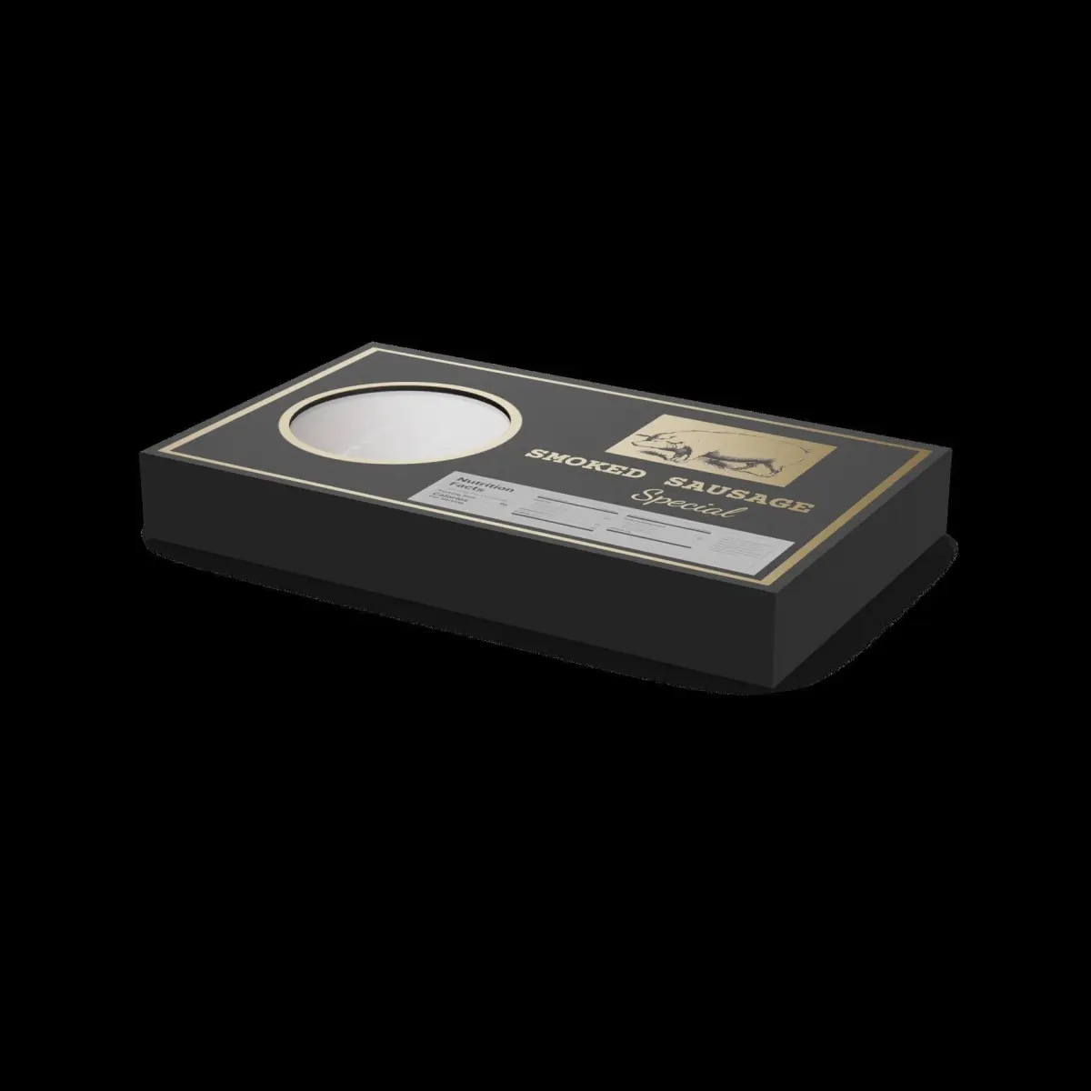 Smoked Sausages: Experience the exquisite flavors of our Smoked Sausages. These sausages are made with the utmost care, using only the highest quality ingredients. Expertly smoked to enhance their taste, they offer a delightful combination of smokiness and juiciness. Packaged in an elegant black box, the sausages are beautifully presented, making them an ideal gift option. The packaging includes a sophisticated label with gold accents, adding a touch of luxury. Each box contains 6 sausages, perfect for a gourmet meal.