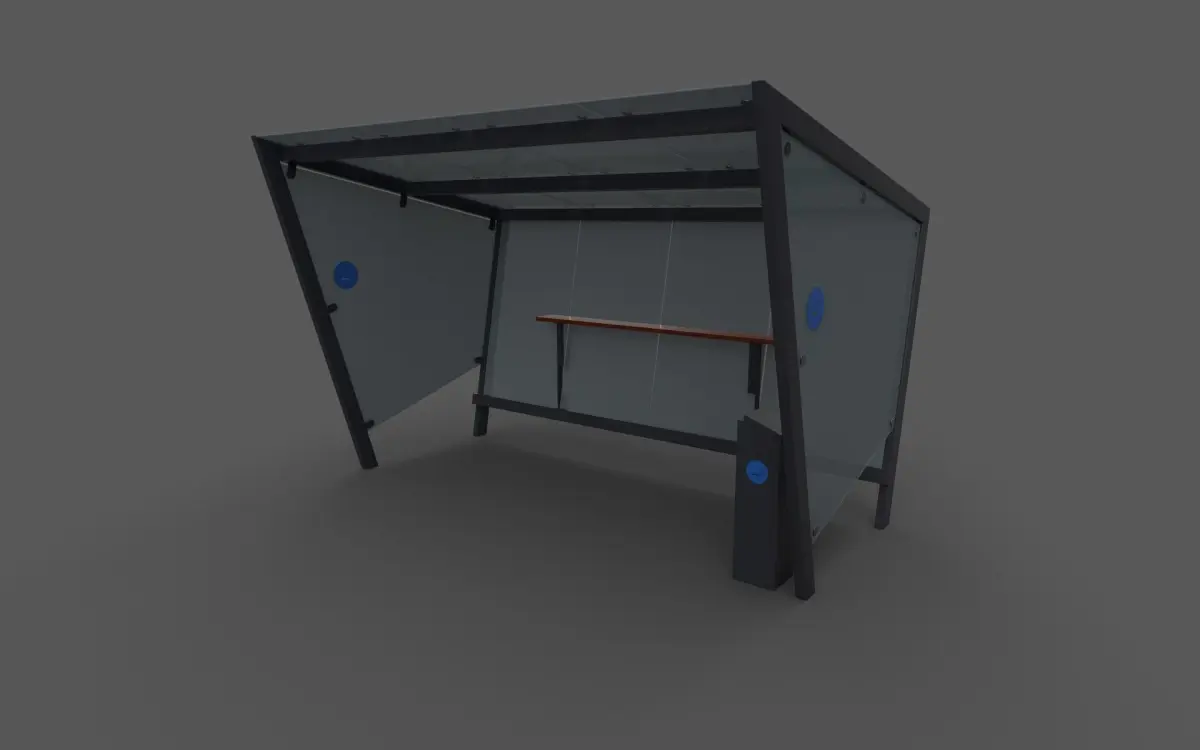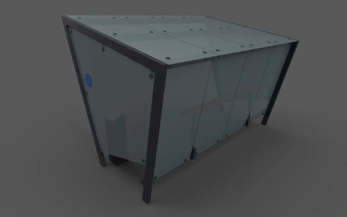 Minimalist and elegant smoking shelter, made from painted steel and glass. 2k PBR met/rough and UHDRP textures.