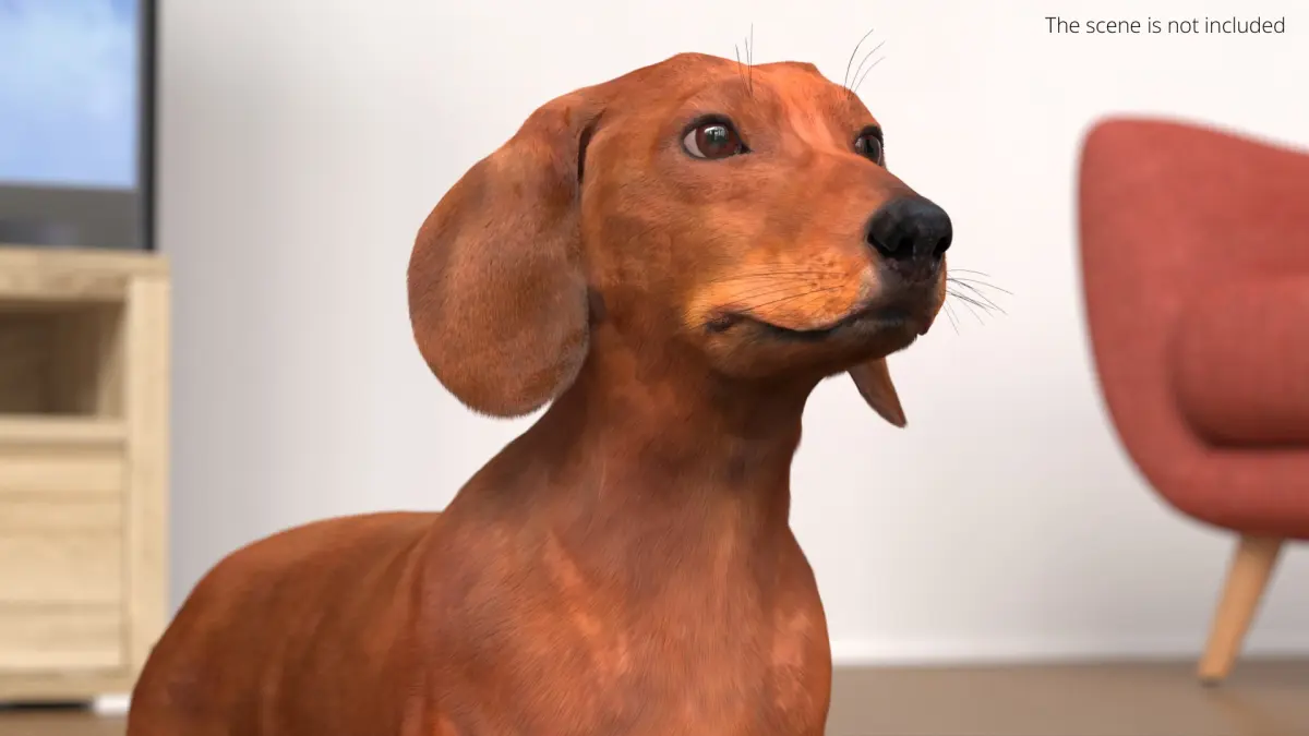 Smooth Dachshund Dog with Red Coat Fur is a three-dimensional model of dachshund, a popular breed known for its distinctive long body and short legs, often referred to as a "wiener dog."